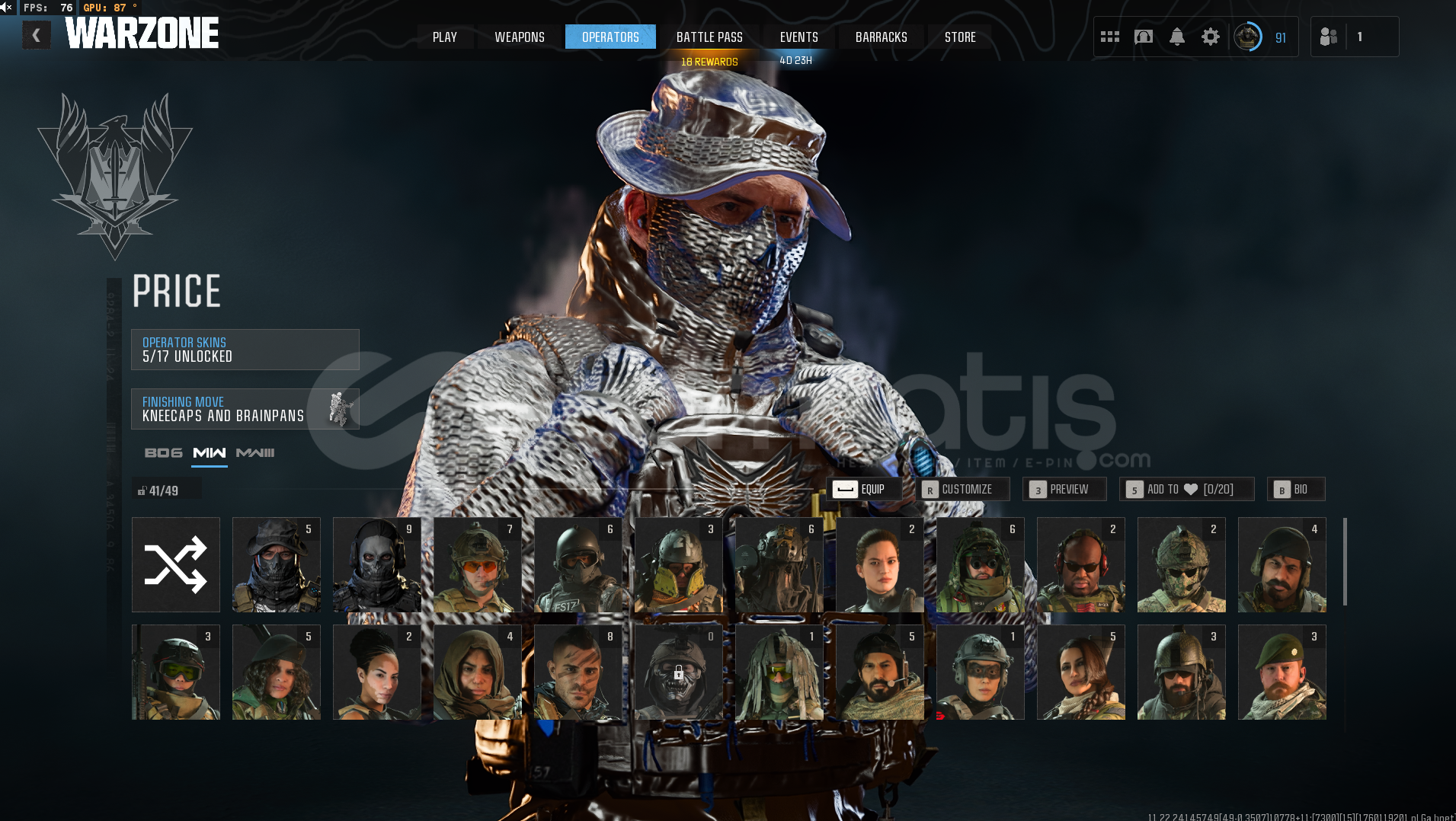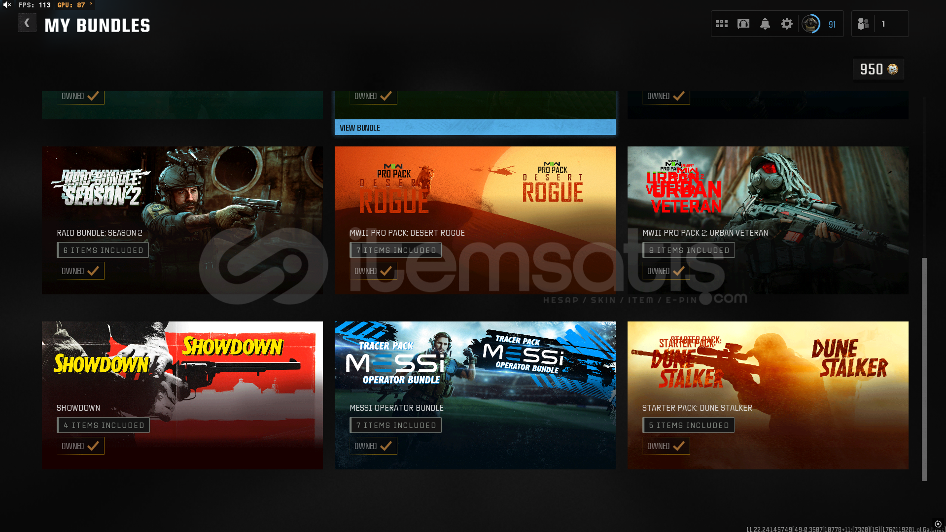 12 adet bundle satın alınmıştır. (Messi, Classic MW 2 Audio Pack, Price, Makarov, Alex, Ghost vs.)