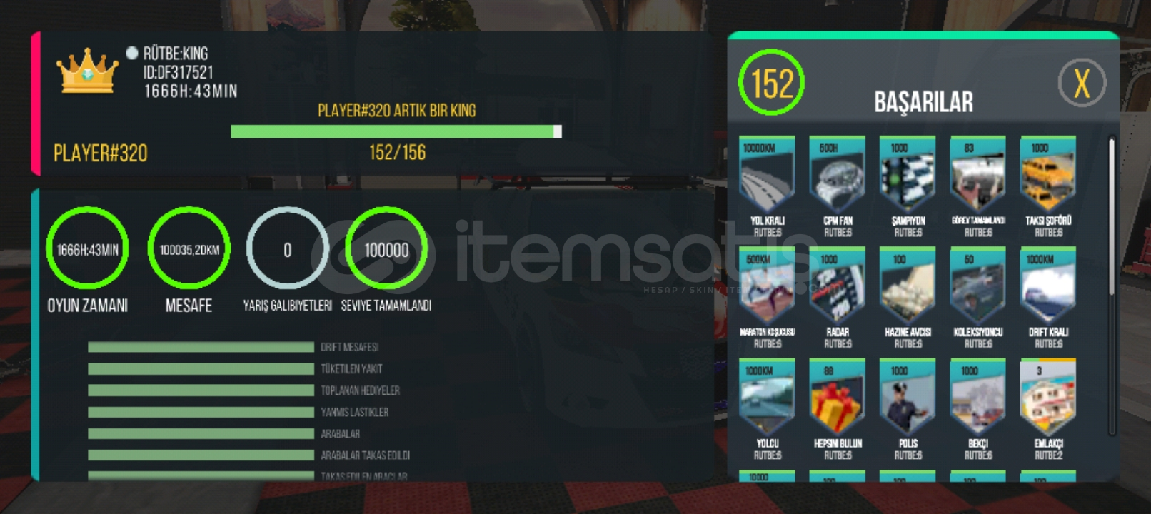 Hesab özelikleri: hesabta 150 çizim 200araba+2 günlük hediyelerden araba toplam 202 arabaBütün kıyafetler ve coinli jantlar açık çoğu arabada siren bulunmakta.V16 motor ve bütün evler açık king rankÇizim özelikleri: logolu HD çizimler pist çizinler çizgi sinema ve çizgi filim tarzı anime tarzı çizimler araba üstünde araba çizimler nadirlik p...