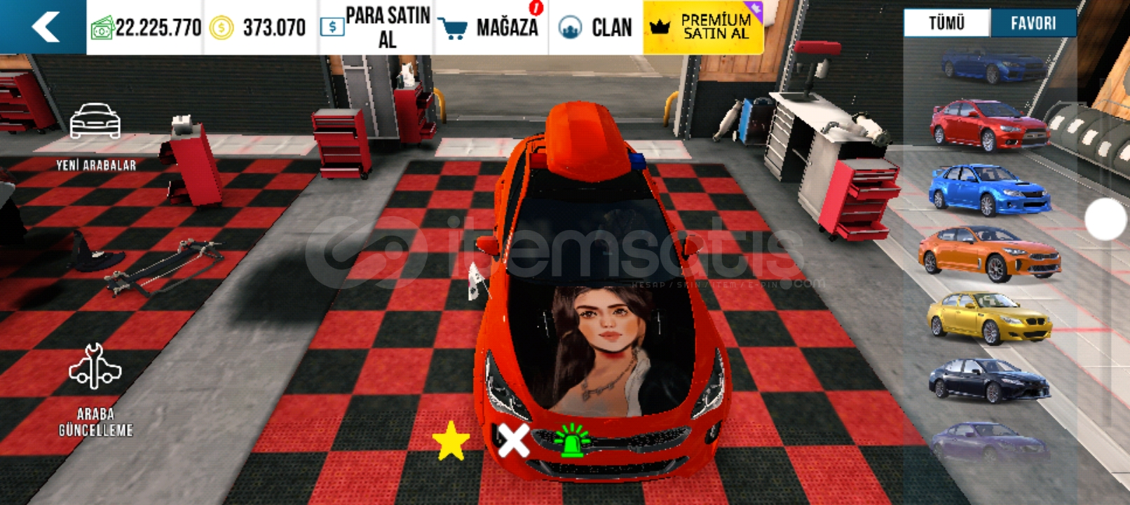 Çizim özelikleri: logolu HD çizimler pist çizinler çizgi sinema ve çizgi filim tarzı anime tarzı çizimler araba üstünde araba çizimler nadirlik payı yüksek olduğundan bir kaçı 3d ve gerçekçi çizimlerde vardır hesapta krom tarzı çizimler ve kompset arabalar tamposuz araçlar motor çizimler bulunmakta hesabta 300k Çoin'de bulunmakta kısacası gözünü doyuracak kadar değerli hesab. hesabı her geçen gün elimden geldiğince geliştirmeye devam edecem fiyat sabit kalacak
