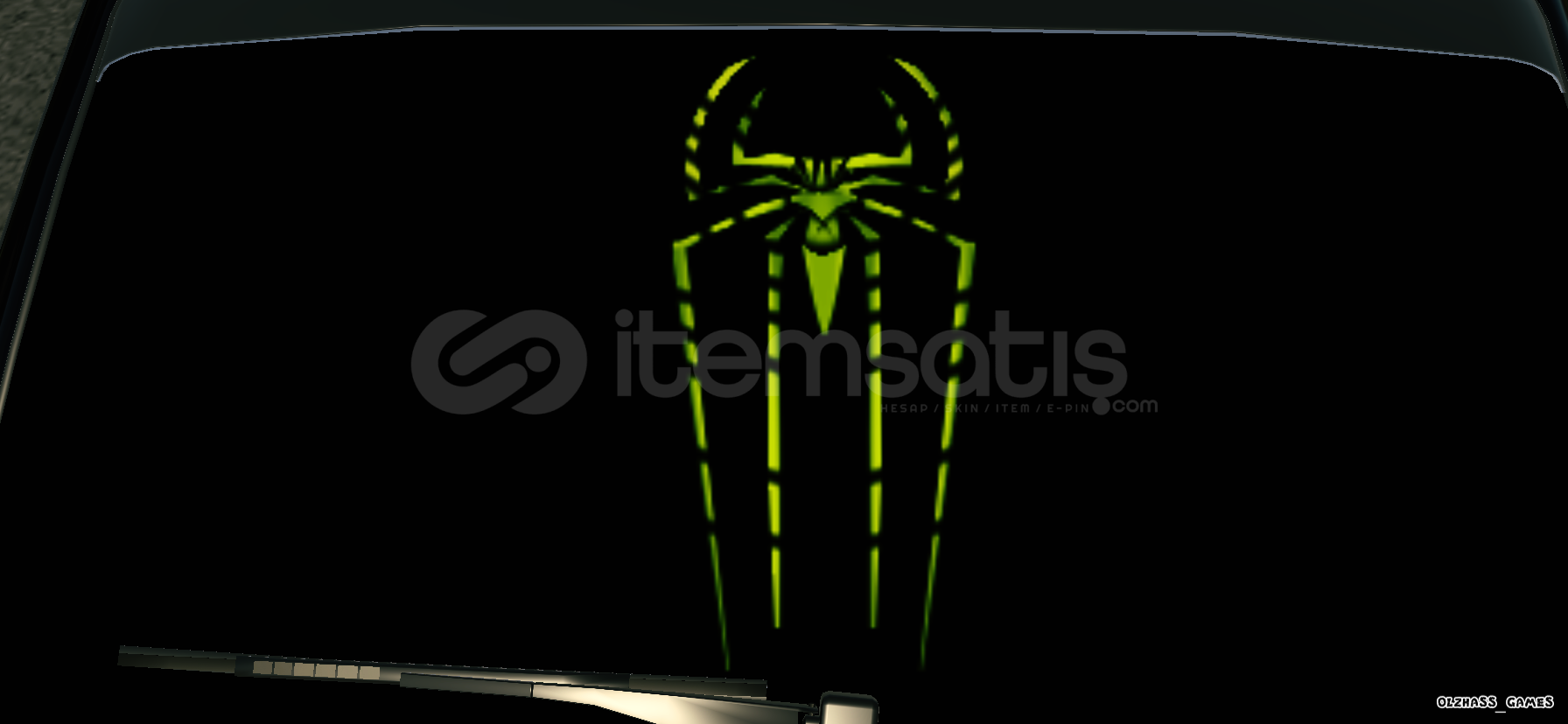 Araçta keyfii olarak fosforlu örümcek detayı cama çizilmiştir.