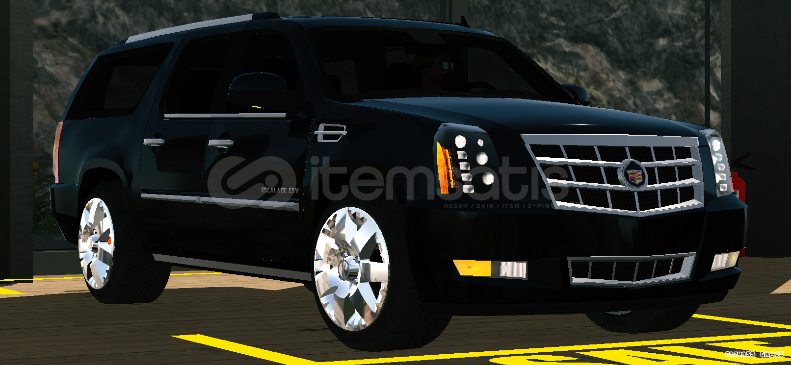 Cadillac Escalade ESV (Hd logo)Hp:414Tork:2300Gearbox:Top speed ayarlıJant:KromFar: KromKaliper:KromKopya Adeti: 0 (koleksiyonumdaki arabam)Fake Detaylar: Hd logolu ancak logo yerine oturmadığı için pixel pixel kalıyor, ESV donanım, logolar vs