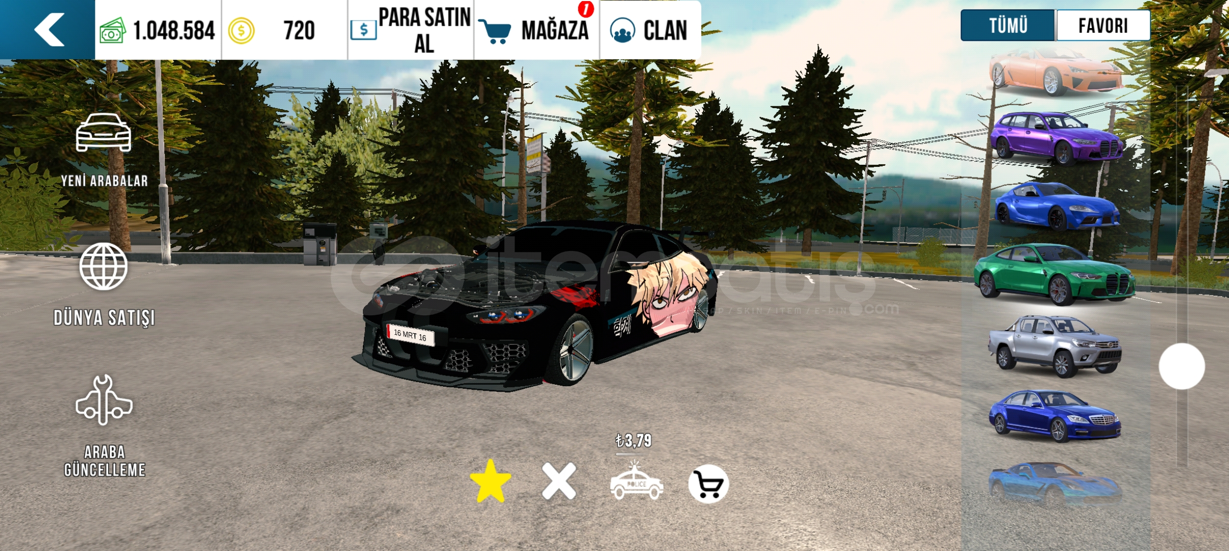 Car Parking Multiplayer kategorisinde Random Hesap ilanı oluşturmak yasaktır. Tespiti halinde ilanınız kapatılır ve 2. tekrarda hesabınız tamamen kapatılır.