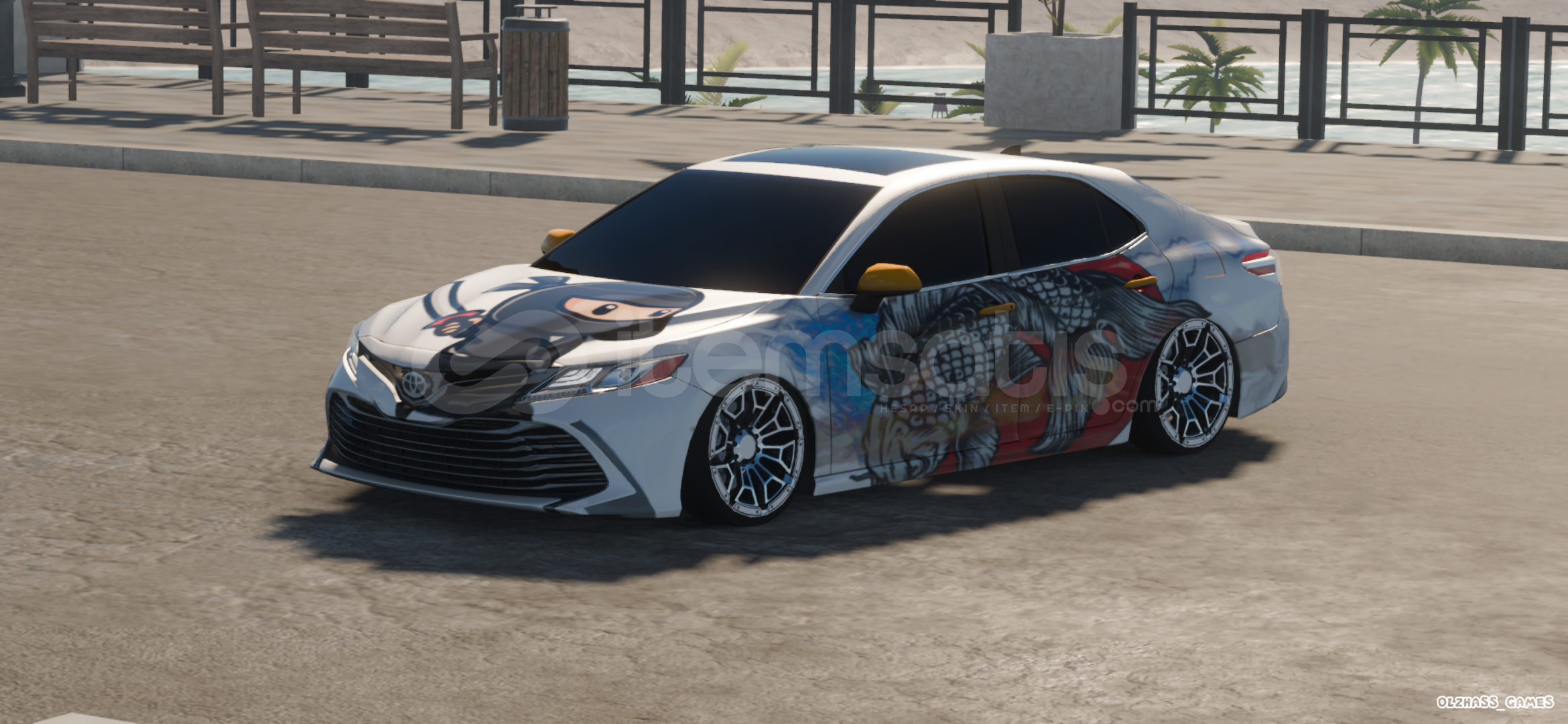 Çizimli logolu plakalı corolla 1500 hp uüklü motor dekorluk ilgi çeken bir araç
