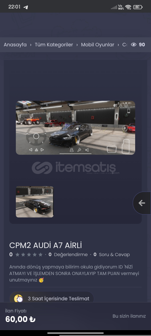 • Satın alacağınız bu ilan 3 Saat içerisinde satıcı tarafından teslim edilecektir..