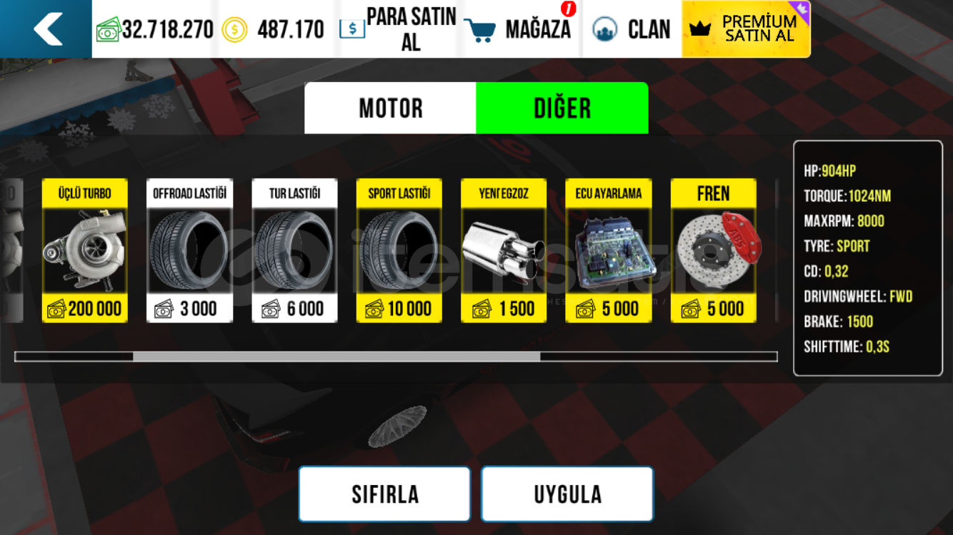 Araba yapılıdır HP yi yapabileceğimiz kadar yükselttik.