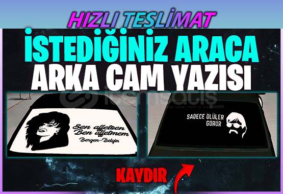 TRDE İLK!!!!⭐️PAKETİN İÇERİĞİ⭐️İSTEDİĞİNİZ 1 ADET ARACA ÖZEL CAM YAZISI 2.fotoğrafa tıklayarak çeşitlerimizi görebilirsiniz.(Aracı teslim edecekseniz) İlanı satın aldıktan sonra oda kurup arabayı teslim edip isteklerini belirtmeniz yeterli olacaktır.(Boş bir arabanın üzerine istiyorsanız) İstediğiniz araca yapt&...