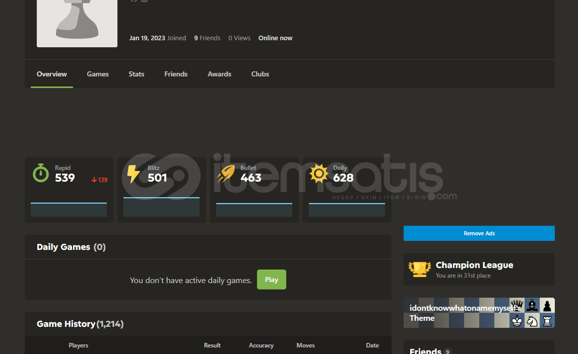 Chess kategorisinde Random Ürün ilanı oluşturmak yasaktır. Tespiti halinde ilanınız kapatılır ve 2. tekrarda hesabınız tamamen kapatılır.