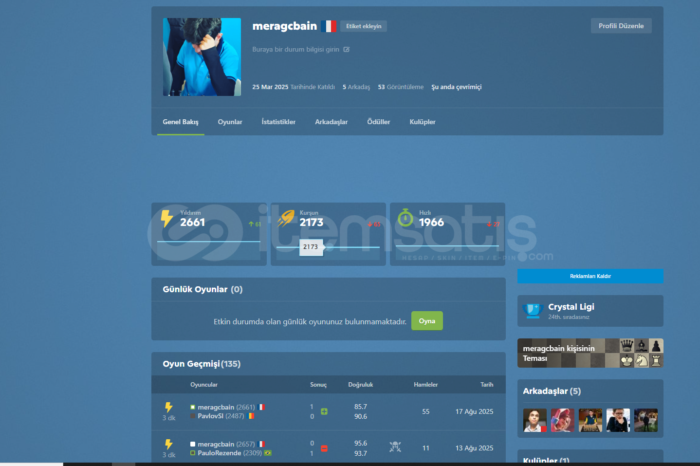 Chess kategorisinde Random Ürün ilanı oluşturmak yasaktır. Tespiti halinde ilanınız kapatılır ve 2. tekrarda hesabınız tamamen kapatılır.