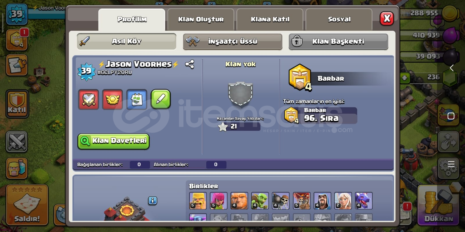 *39 Level*3 İnşaatçı*236 Yeşil Taş*Detaylar Resimlerdedir.*1 adet ücretsiz isim değiştirme hakkı vardır.*Supercell Bağlı değildir. Kendi hesabınızı bağlayabilirsiniz.