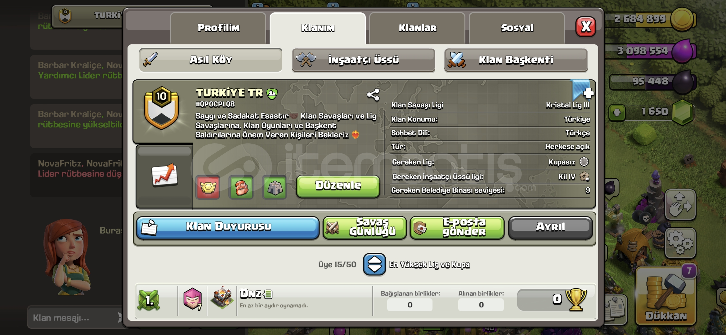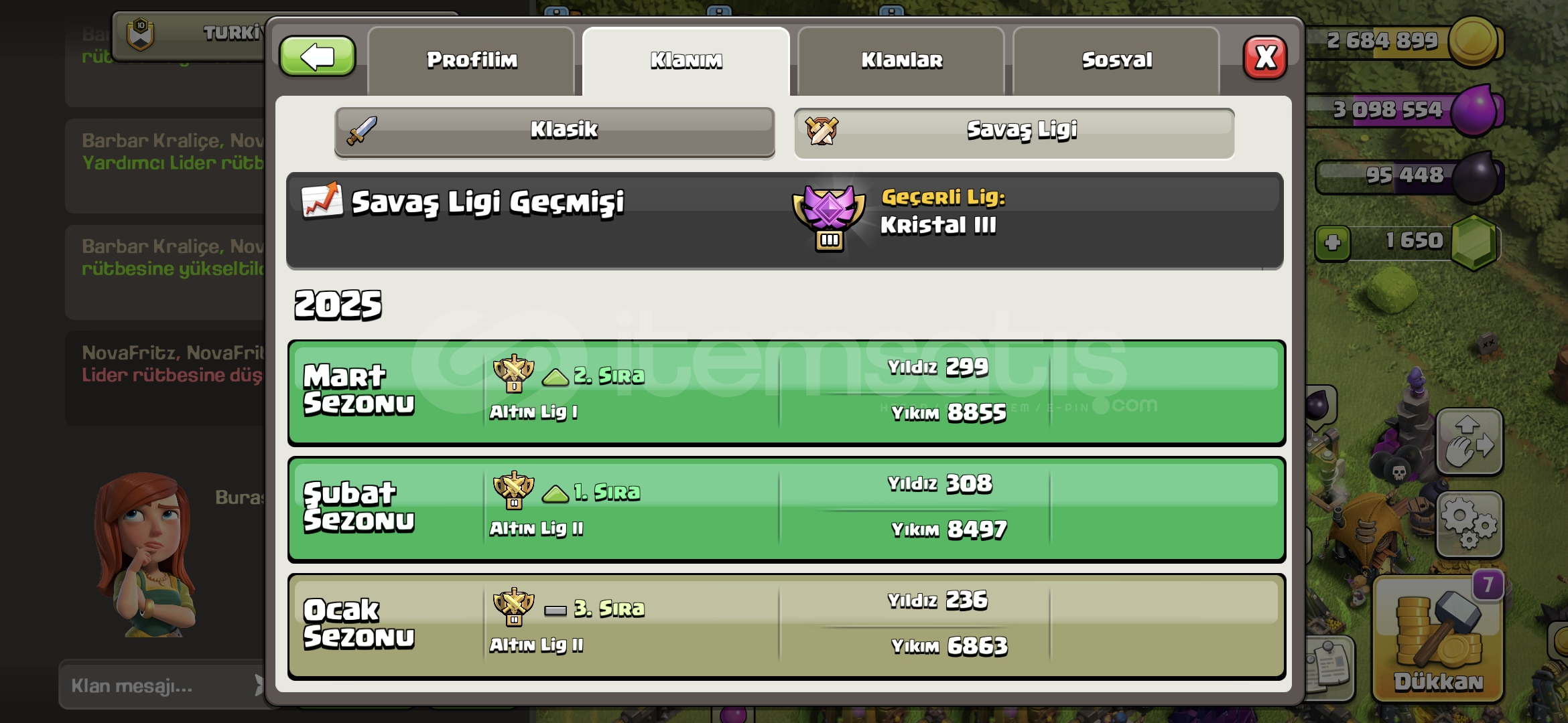 10 seviye KLANLigi Kristal 3Başkent binası 6 seviyeFiyatı çok uygun bu fiyata kaçmaz