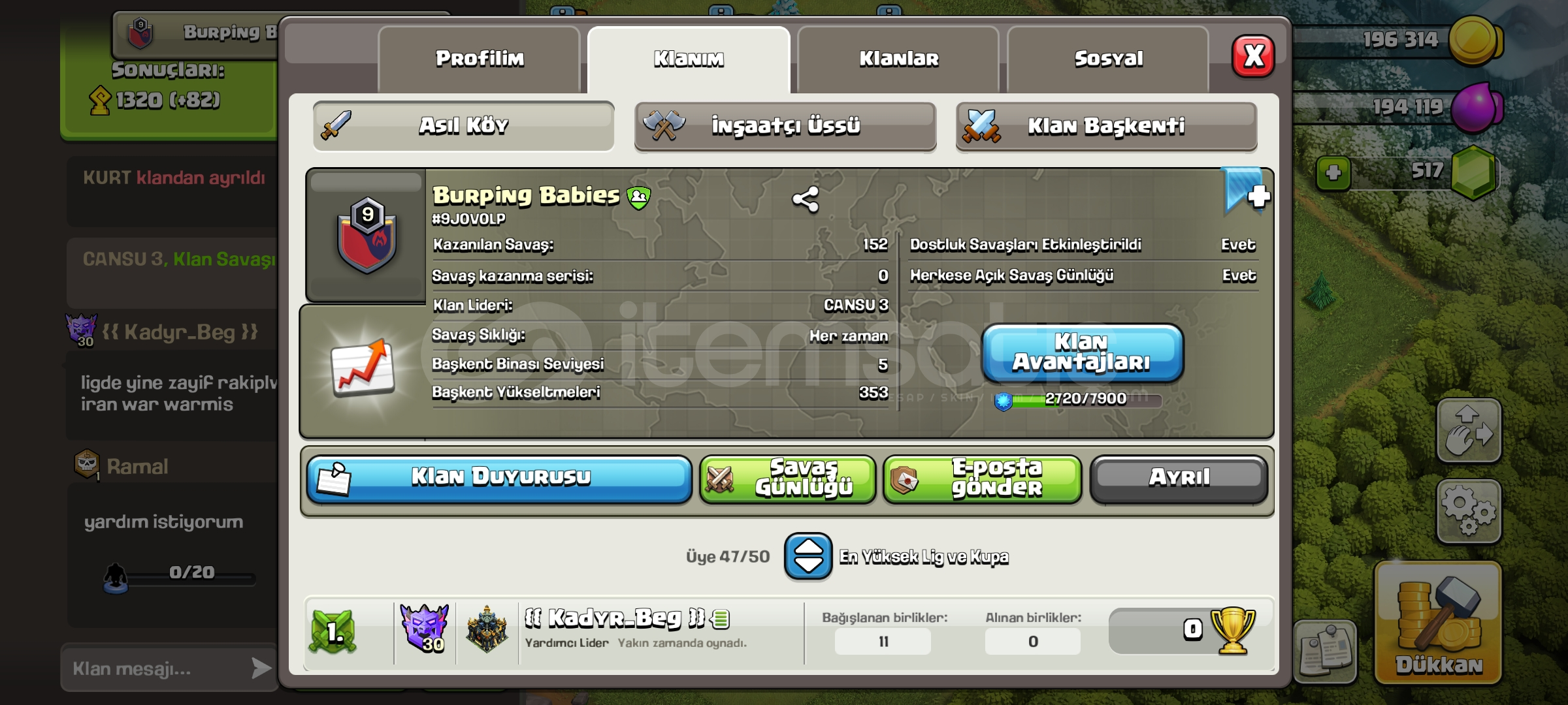 AKTİF KLAN PİYASANİN EN UCUZU KLAN 50 DE 50 SÜREKLİ OYUNCU GELİP ÇIKIYOR KLANLAR ARASINDA GÖRÜNÜRLUKTE İYİ