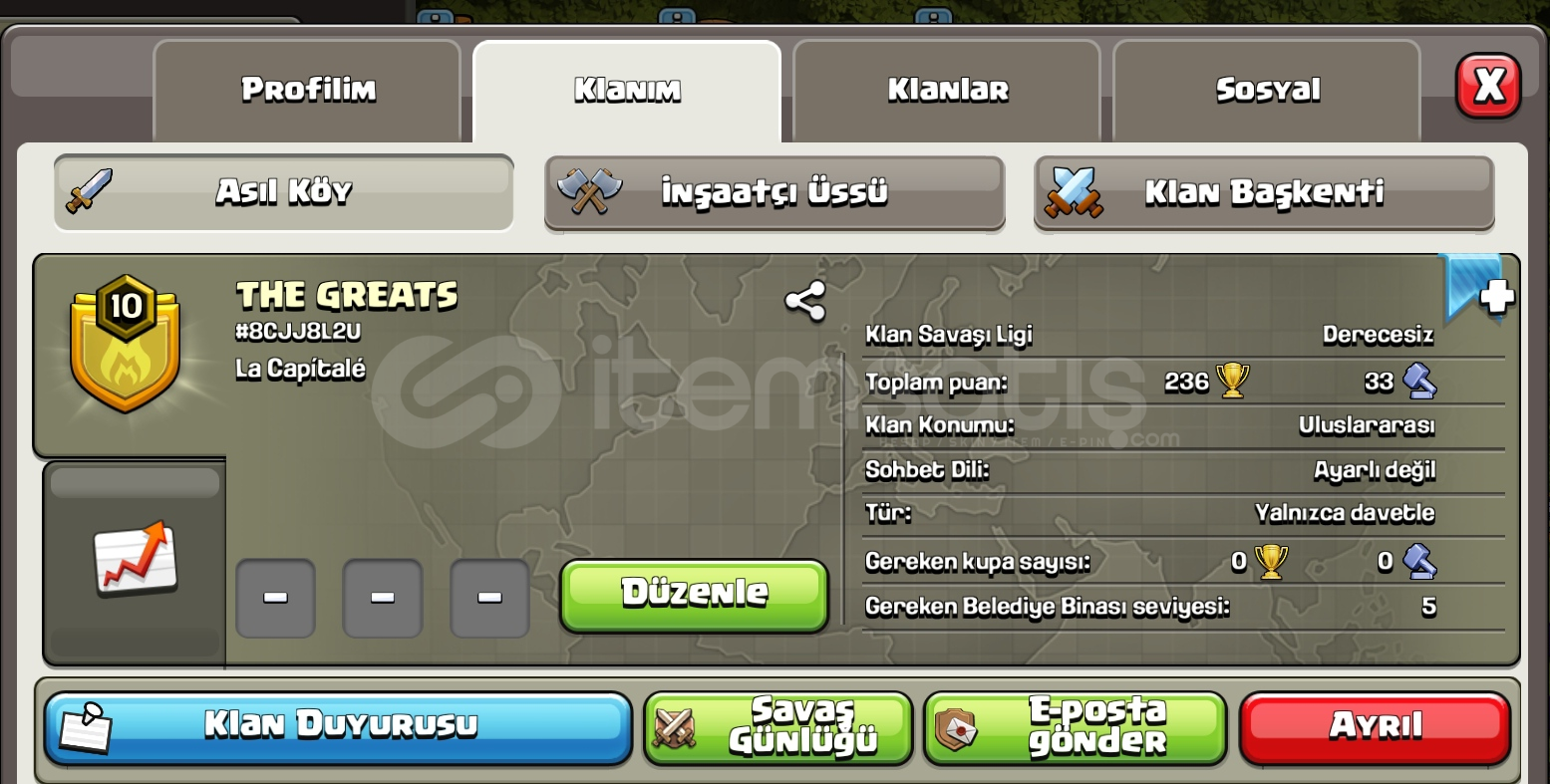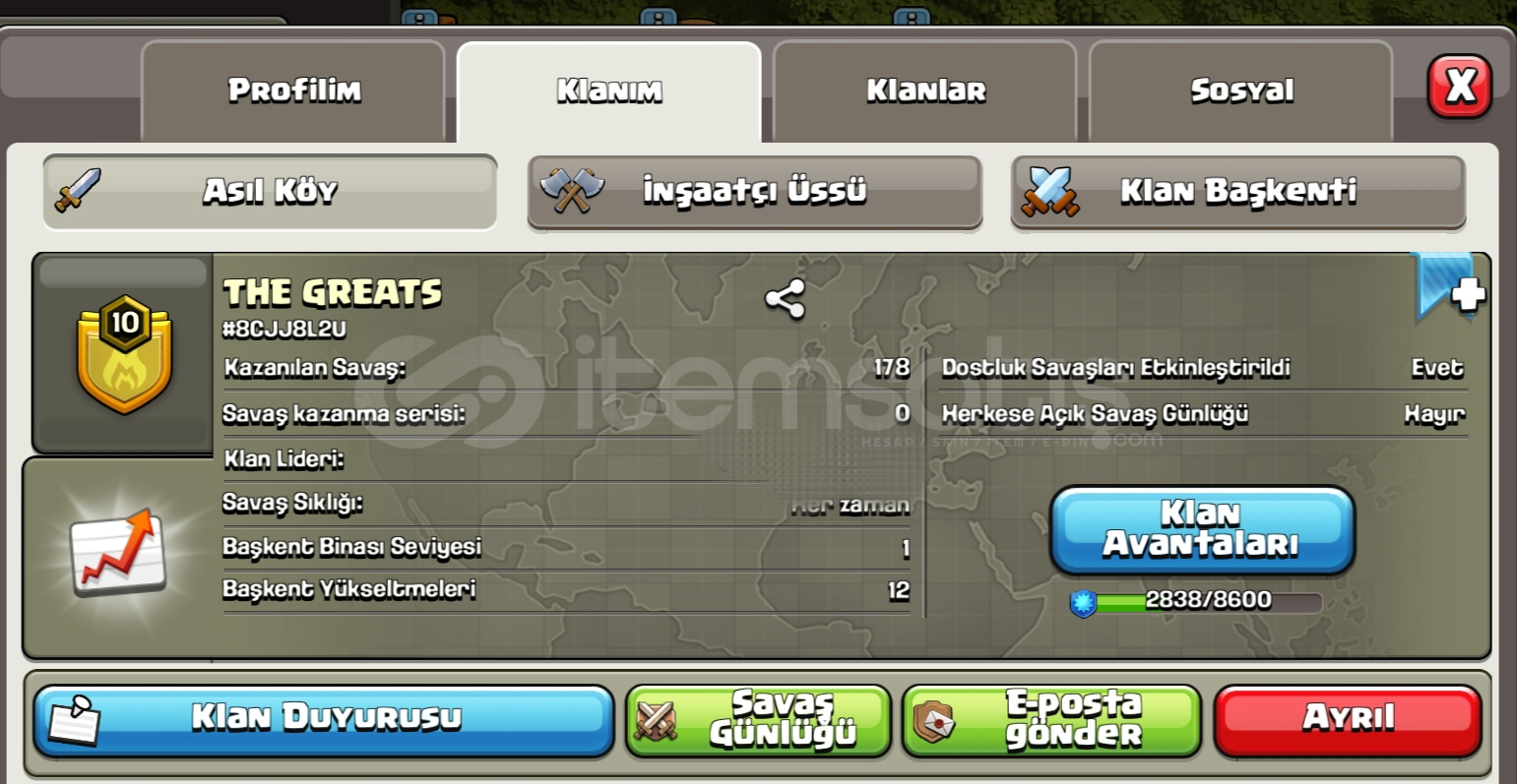 İlanı satın aldığınızda sohbet açınız ve satıcı ile iletişime geçiniz.Klan teslim sırasında ekran kaydı alınacaktır.