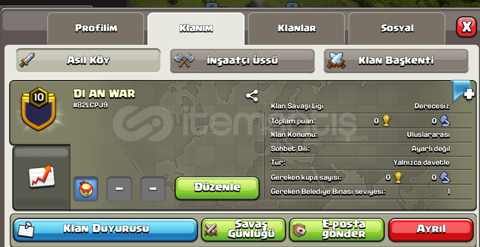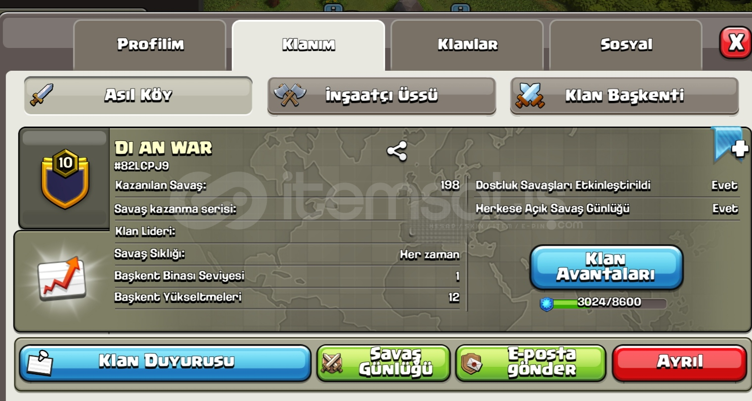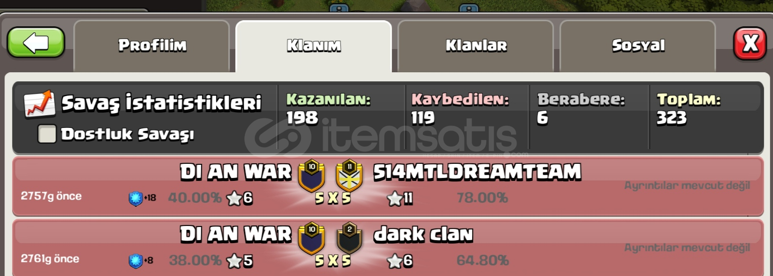 Klan devir teslim işlemleri gün içinde teslim olunur.Klan satın alındıktan sonraki 0-6 saat içerisinde klanın teslimi yapılacaktır.Klanın teslimi yapıldıktan ve tüm işlemler hallolduktan sonra klanın tarafımızca bir sorumluluğu kalmamaktadır.KEYİFLİ ALIŞVERİŞLER DİLERİZ.