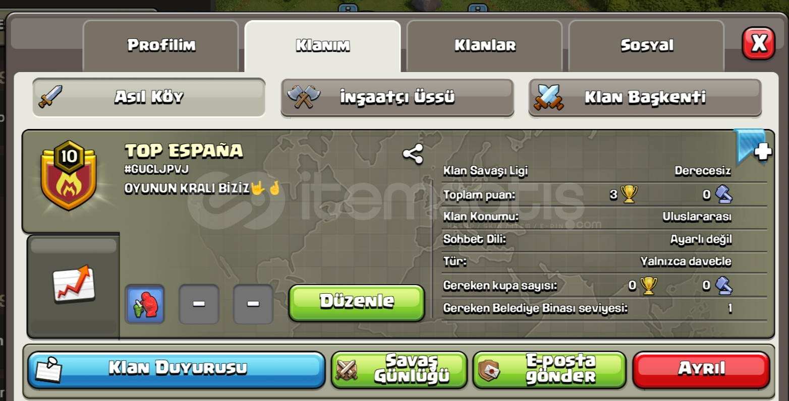 İlanı satın aldığınızda sohbet açınız ve satıcı ile iletişime geçiniz.Klan teslim sırasında ekran kaydı alınacaktır.
