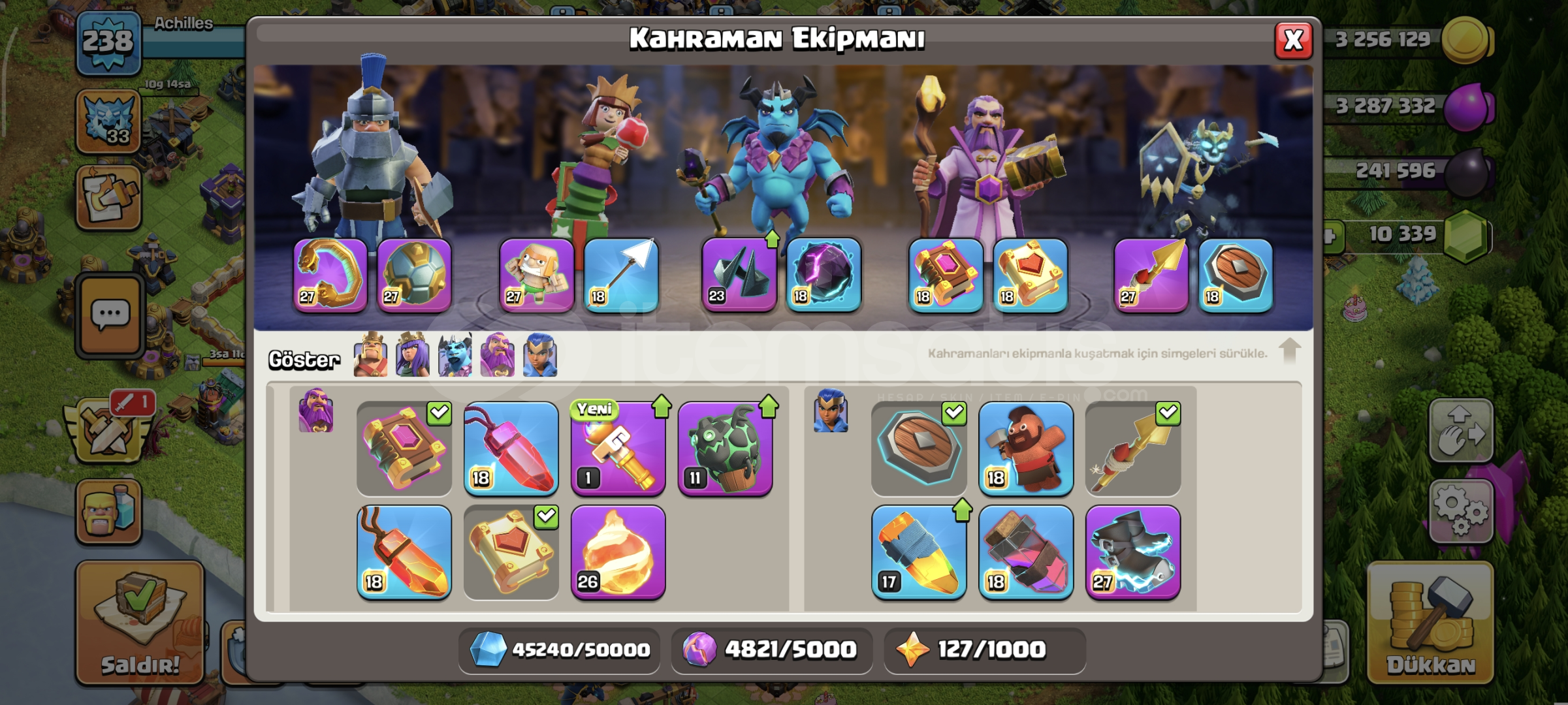 10.400Elmas Th18 Ful hero Ekipman Arka Planlı