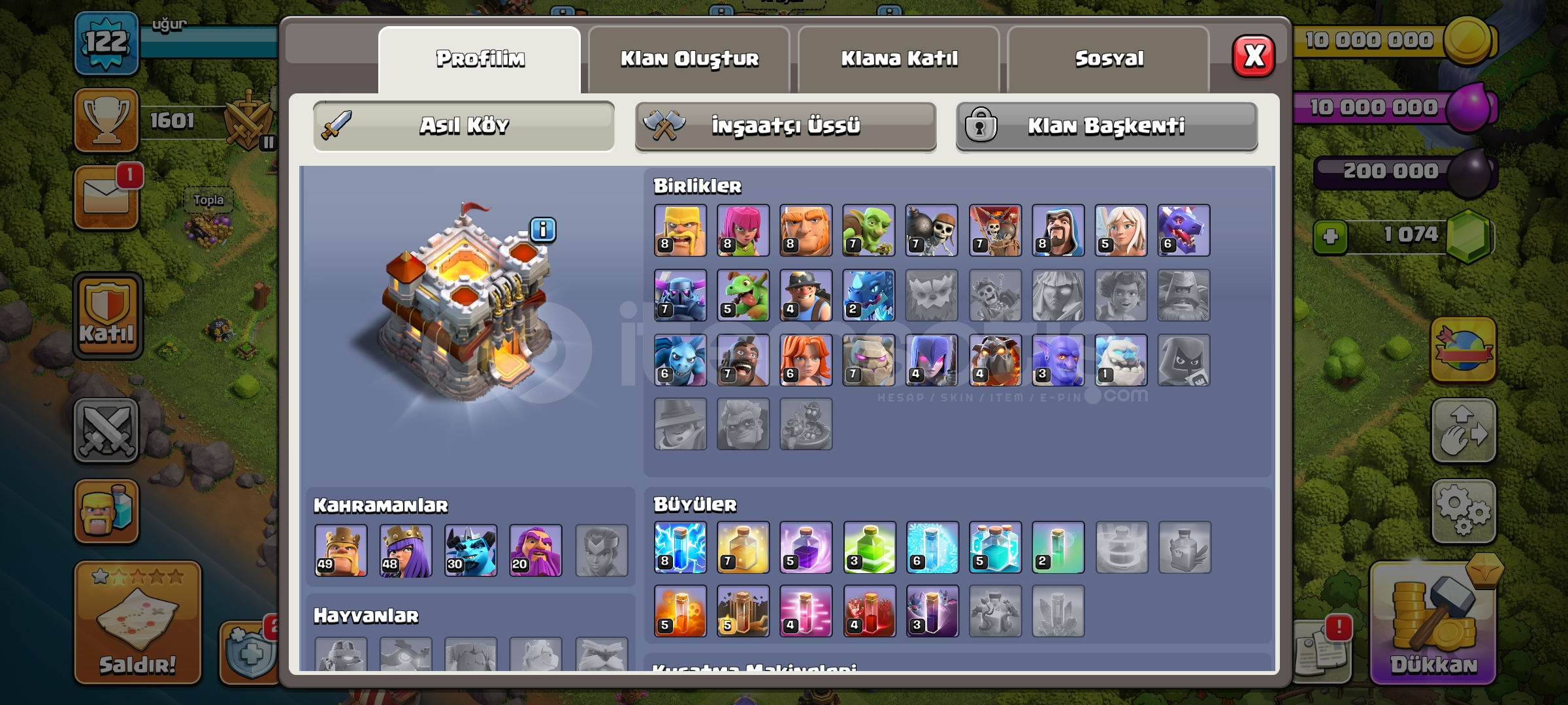 Aldığınızda hesap maili değiştirilir.Kendi mailize çekebilirsiniz.Hesapta 1007 Taş bulunmakta.5 inşaatçı.Ve çok eski hesap olması nedeyile çeşitli nadirlikte itemler.