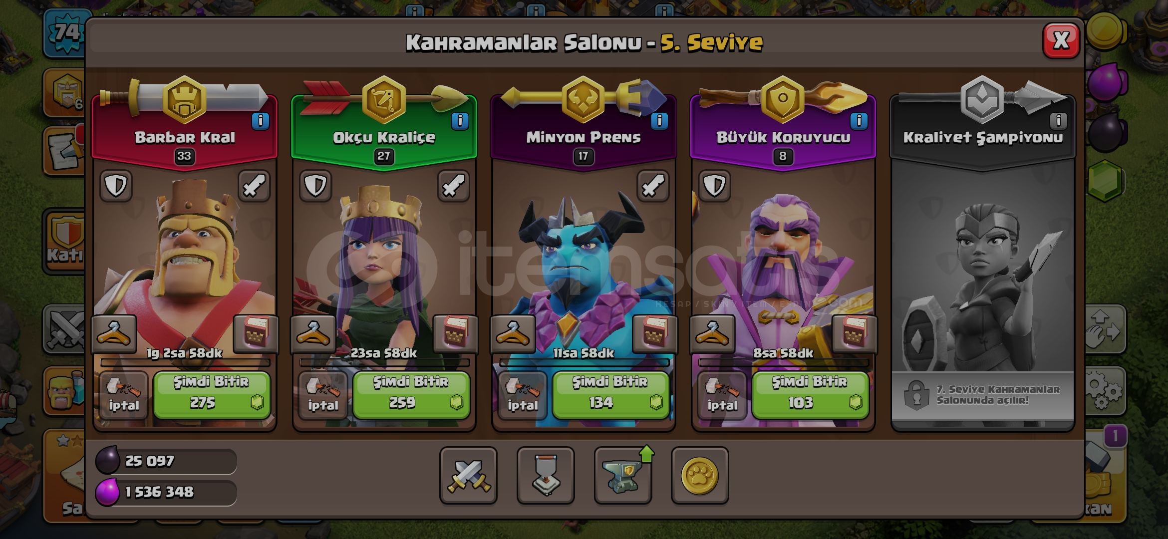 4 şampiyon açık barbar kral Okçu kraliçe minyon prens ve koruyucu