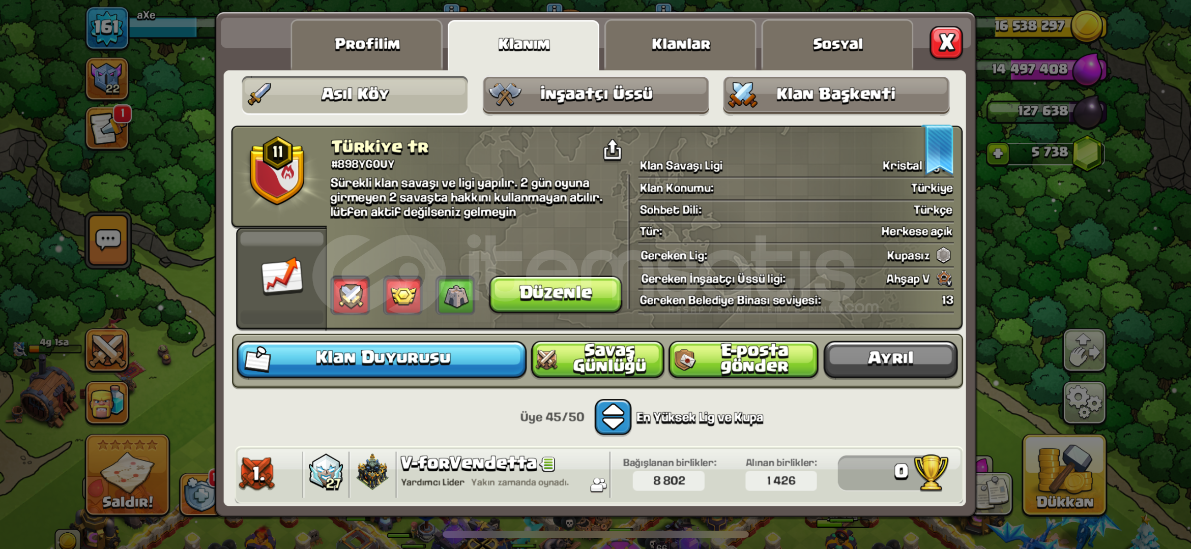 Klanım 11 seviyedir. Aktif olmayan kişileri sürekli attığım için aktif bir klandır. Artık işlerim ...