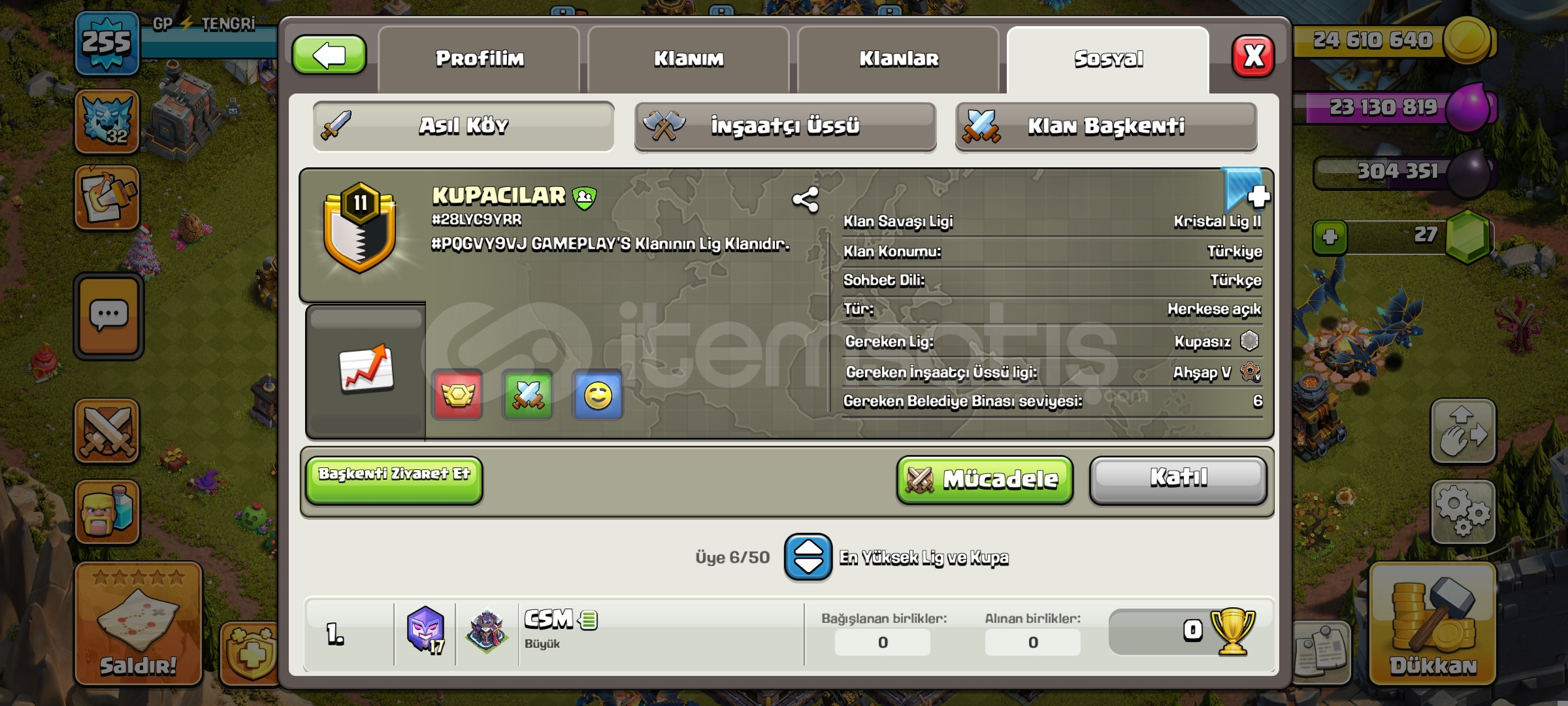 8 Seviye Başkent 🔥Kristal Lig 2 🔥11 Seviye 🔥Türk Klanı 🔥🔥Oyunu Bıraktığımdan Dolayı Satıyorum