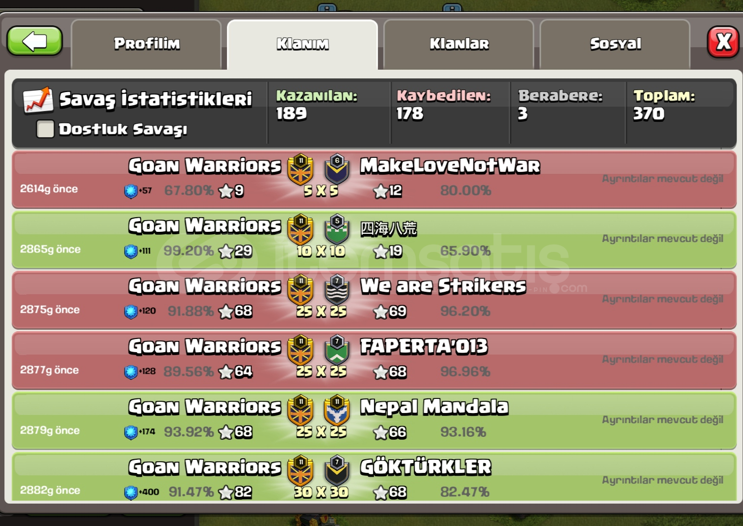 Klan devir teslim işlemleri gün içinde teslim olunur.Klan satın alındıktan sonraki 0-6 saat içerisinde klanın teslimi yapılacaktır.Klanın teslimi yapıldıktan ve tüm işlemler hallolduktan sonra klanın tarafımızca bir sorumluluğu kalmamaktadır.Saat 24.00'dan itibaren yapılan işlemler sabah 08.00'dan sonra teslim edilir.Klanın tüm bilgilerine paylaşılmış ol...
