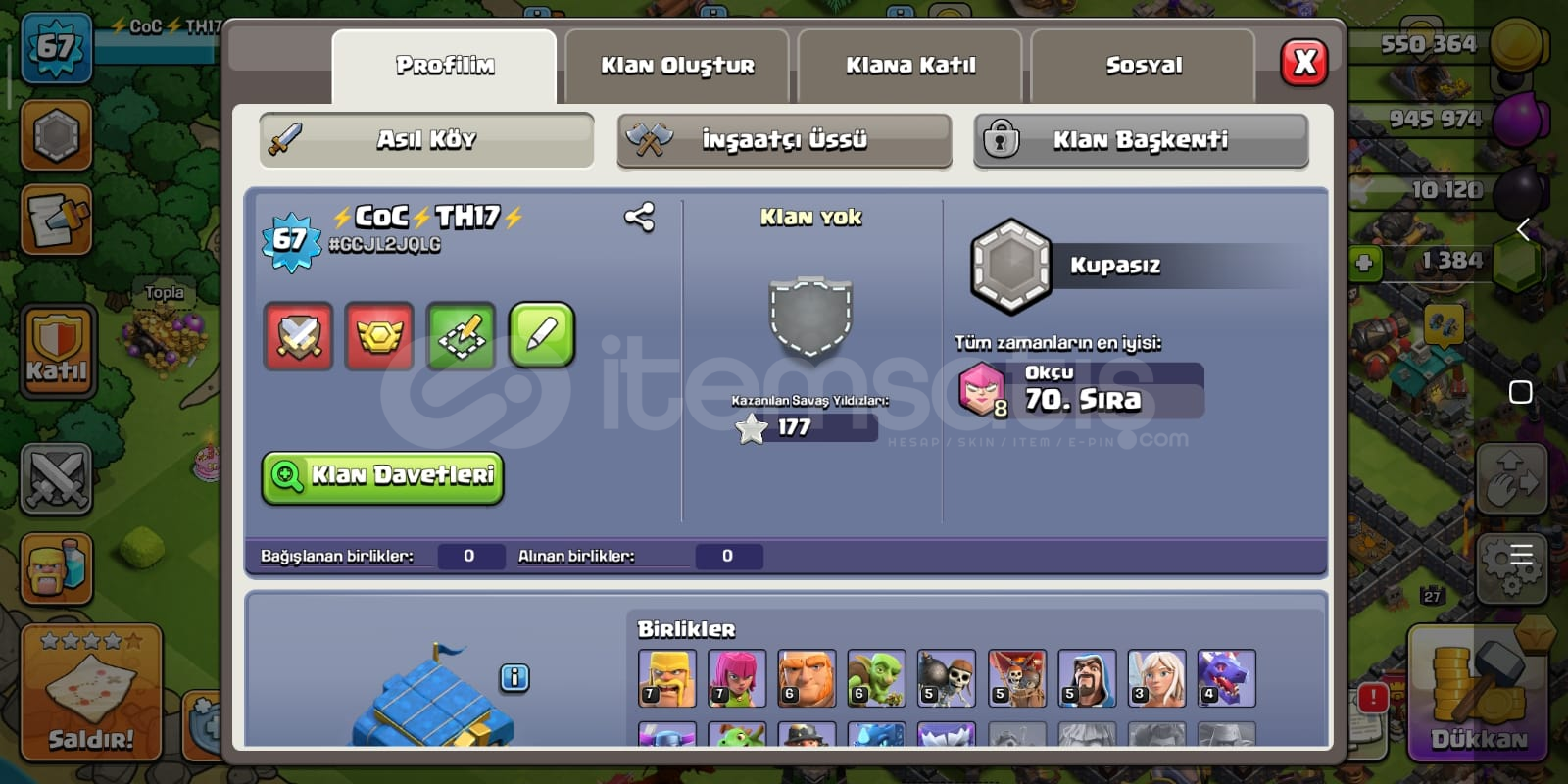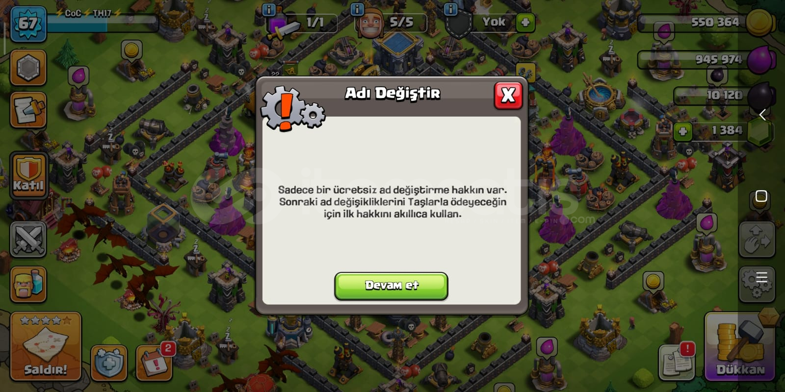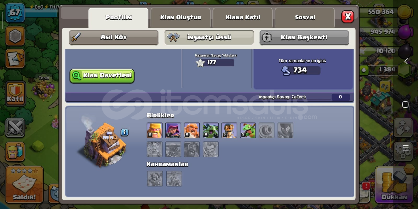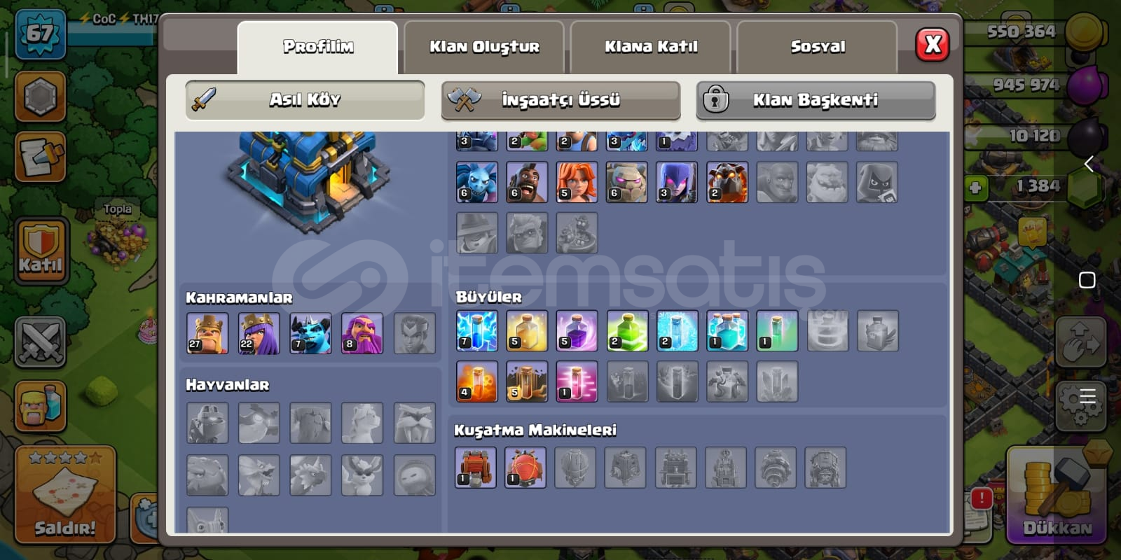 *67 Level*5 İnşaatçı*1384 Yeşil Taş*Otomatik Teslimat*Detaylar Resimlerdedir.*1 adet ücretsiz isim değiştirme hakkı vardır.*Supercell Bağlı değildir. Kendi hesabınızı bağlayabilirsiniz.