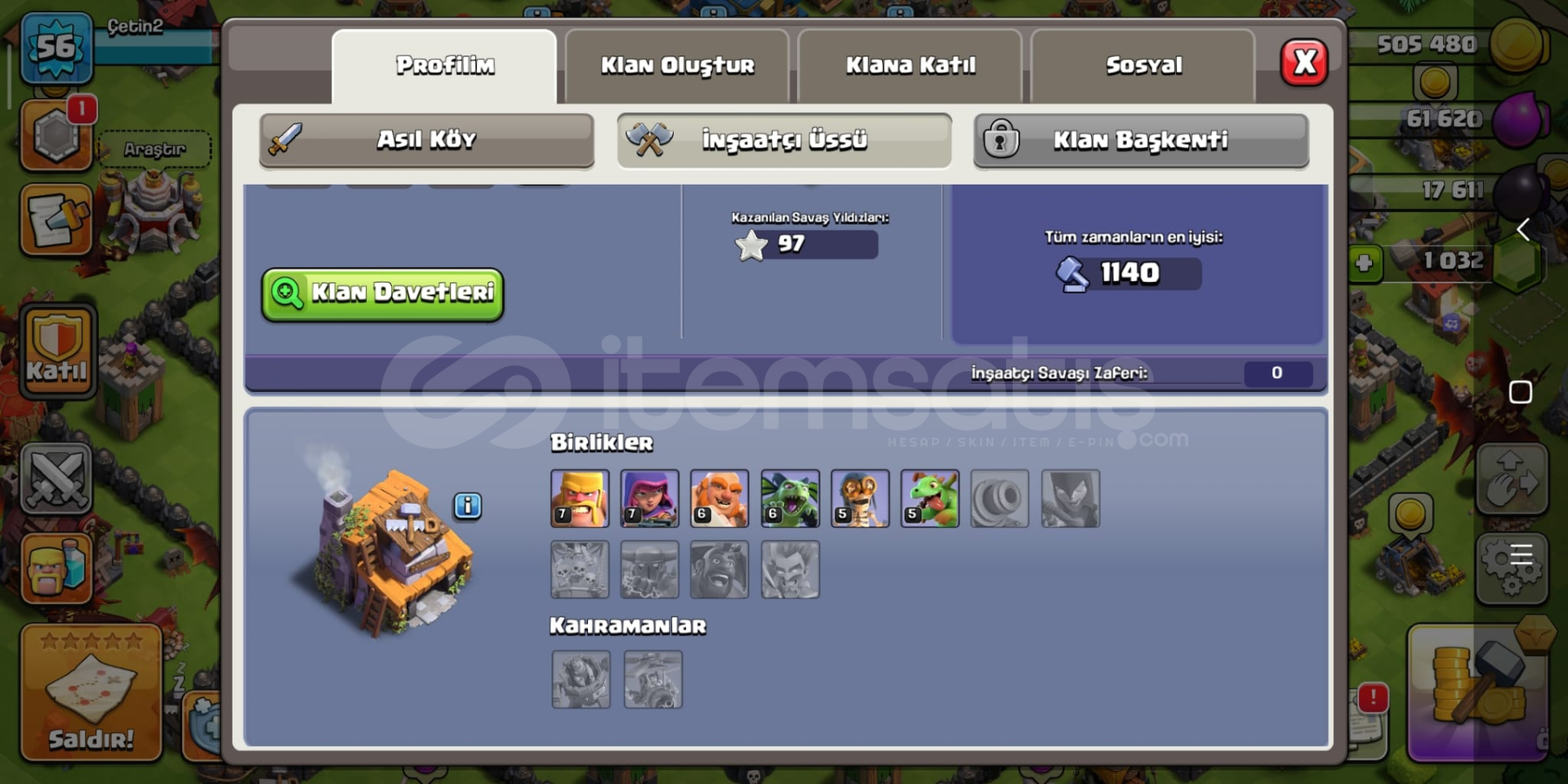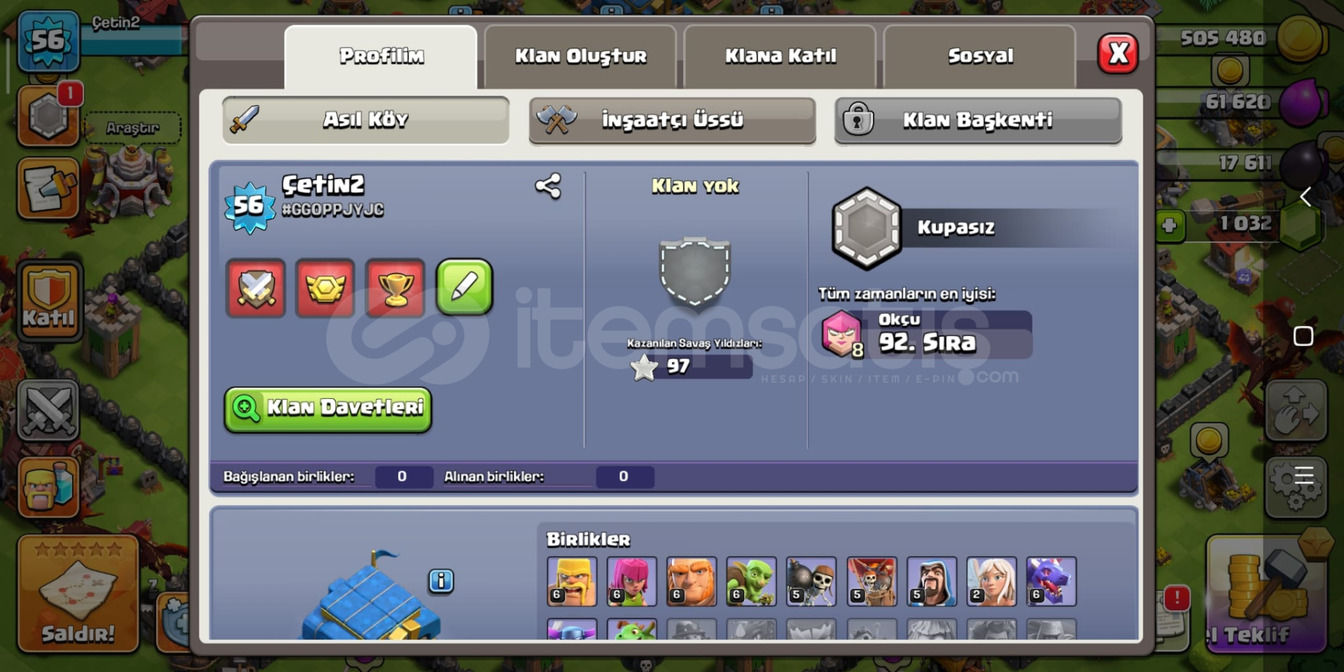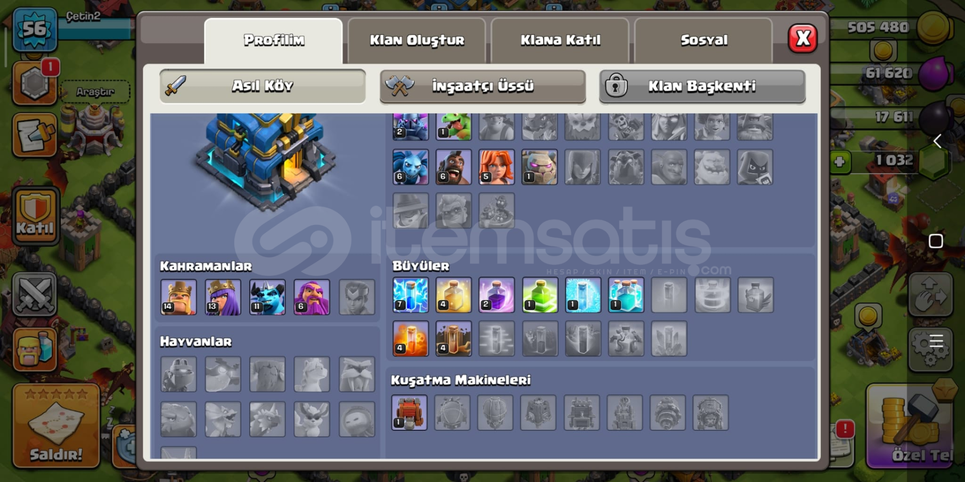 *56 Level*4 İnşaatçı*1032 Yeşil Taş*Otomatik Teslimat*Detaylar Resimlerdedir.*Supercell Bağlı değildir. Kendi hesabınızı bağlayabilirsiniz.