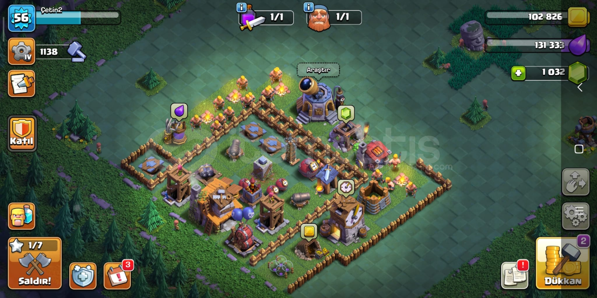 *56 Level*4 İnşaatçı*1032 Yeşil Taş*Otomatik Teslimat*Detaylar Resimlerdedir.*Supercell Bağlı değildir....