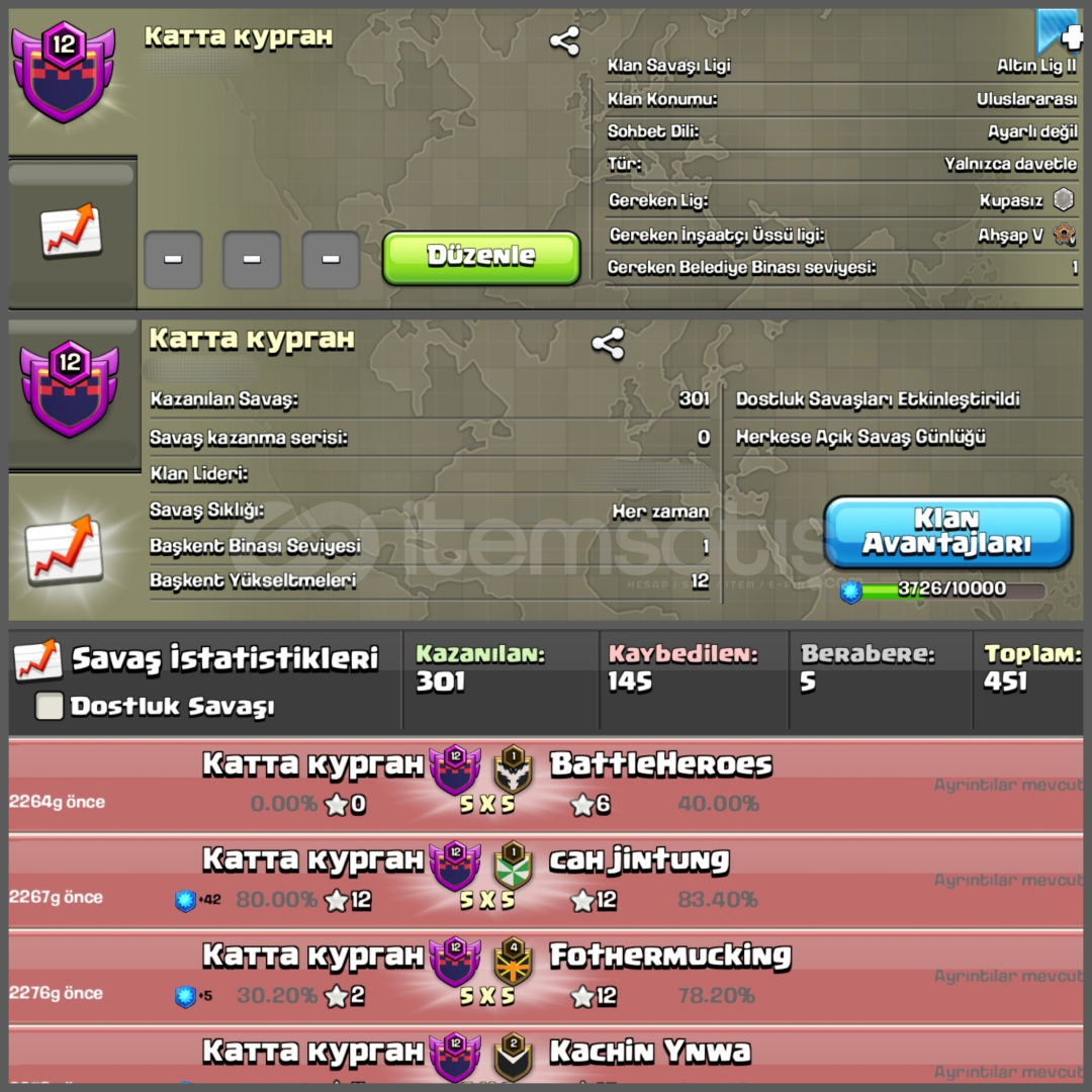 Satıcı güvenilir, iletişimi kuvvetli ve işini düzgün yapan biri. Clash of Clans klan teslimatı eksiksiz ve hızlı şekilde gerçekleşti. Tekrar alışveriş yaparım.