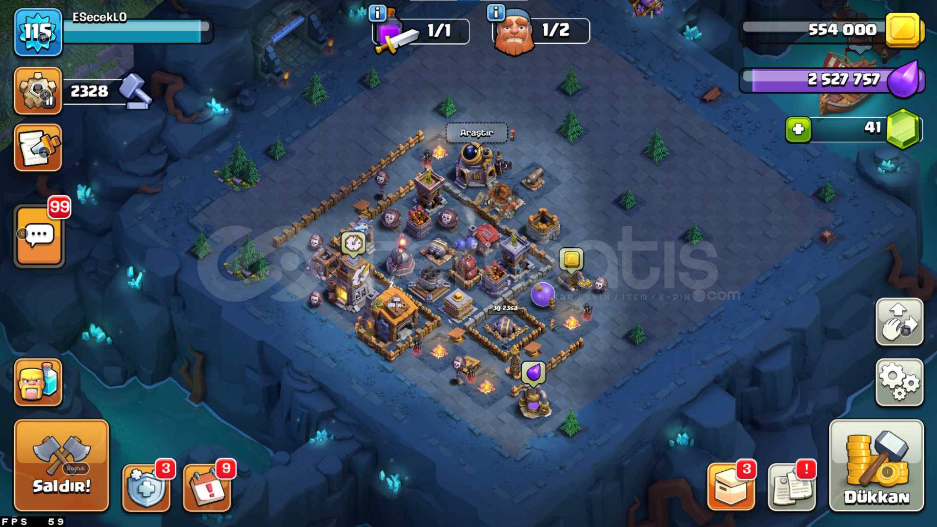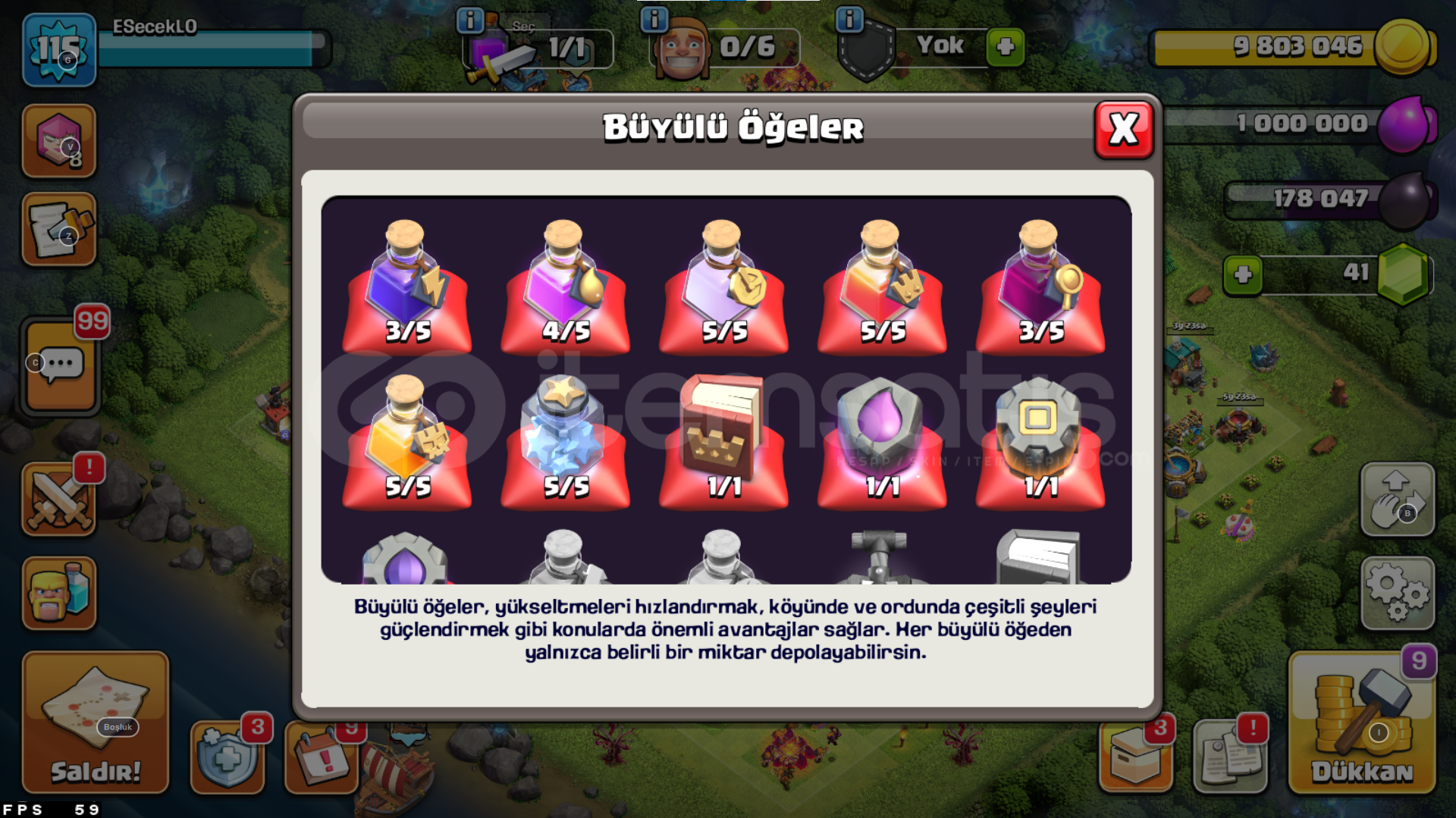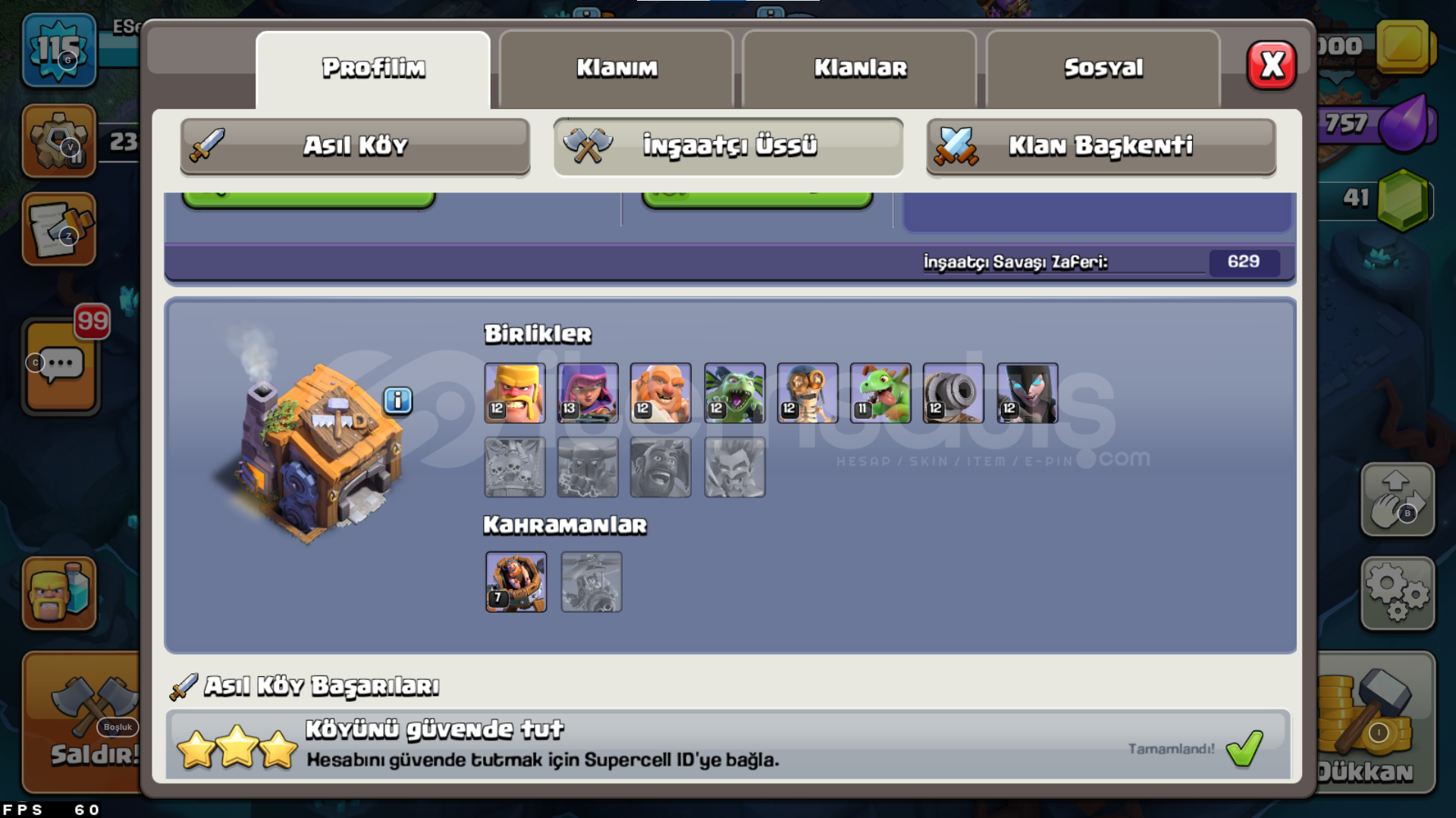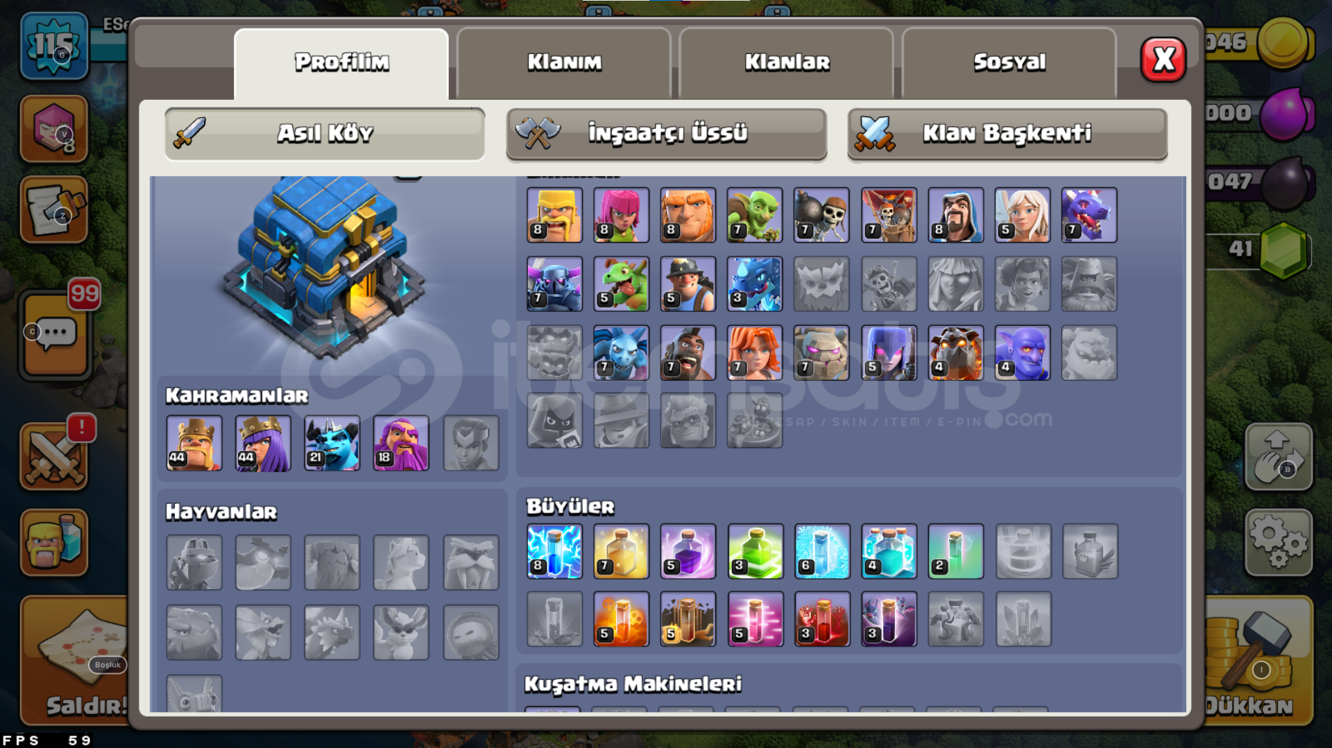 -------------------------------HESABIMIZ 4 GÜN GEÇERLİ BÜYÜK KAMPANYA FİYATINDAN SUNULMAKTADIR--------------------------------HESABIMIZ OTOMATİK TESLİMATTIR AKTİF OLMASAK BİLE ALABİLİRSİNİZHESABIMIZDA 9.8 M ALTIN 1 M İKSİR 178 BİN KARA İKSİR 41 ELMAS BULUNUYOR İNŞAATÇI KÖYÜNDE İSE 554K ALTIN 2.5M İKSİR BULNUMAKTAANA KÖYDE OKÇU 8 LİGİNDE ...