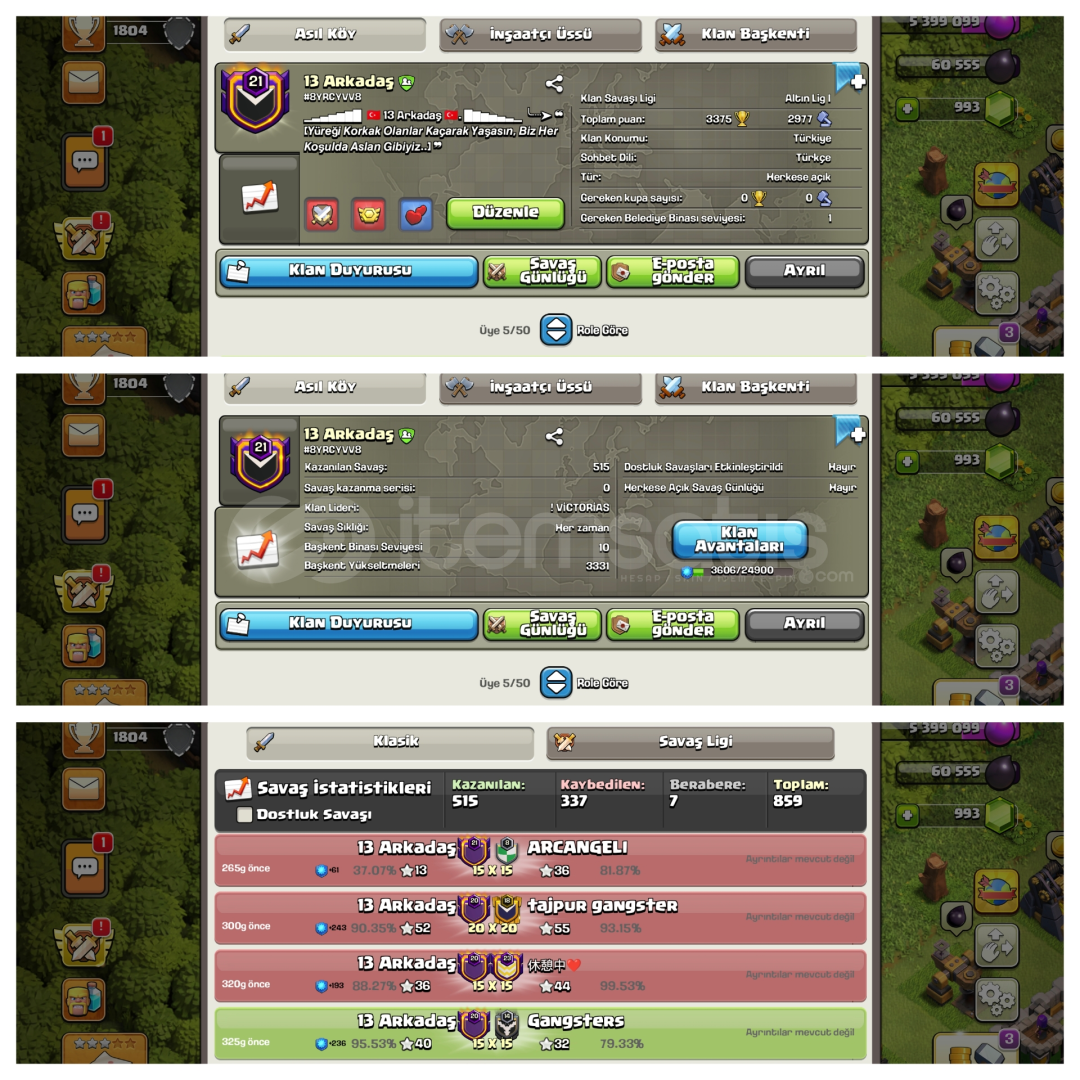10/10 DEĞERLENDİRME PUANIAÇIKLAMAYI LÜTFEN SONUNA KADAR OKUYUNUZ !HESABIN EK ÖZELLİKLERİ22 AZ KALMIŞ13 ArkadaşEşi Benzeri Yok !Harika Savaş GünlüğüAltın 1 ligiBaşkent Seviyesi 10Başkent Yükseltmesi 3331Alıcısına Hayırlı Olsun- Her Zaman En İyi Şekilde Hizmet Vermeye Çalışıyoruz. Ayrıntı Ve Daha Fazlası İçin Mesaj G&ou...