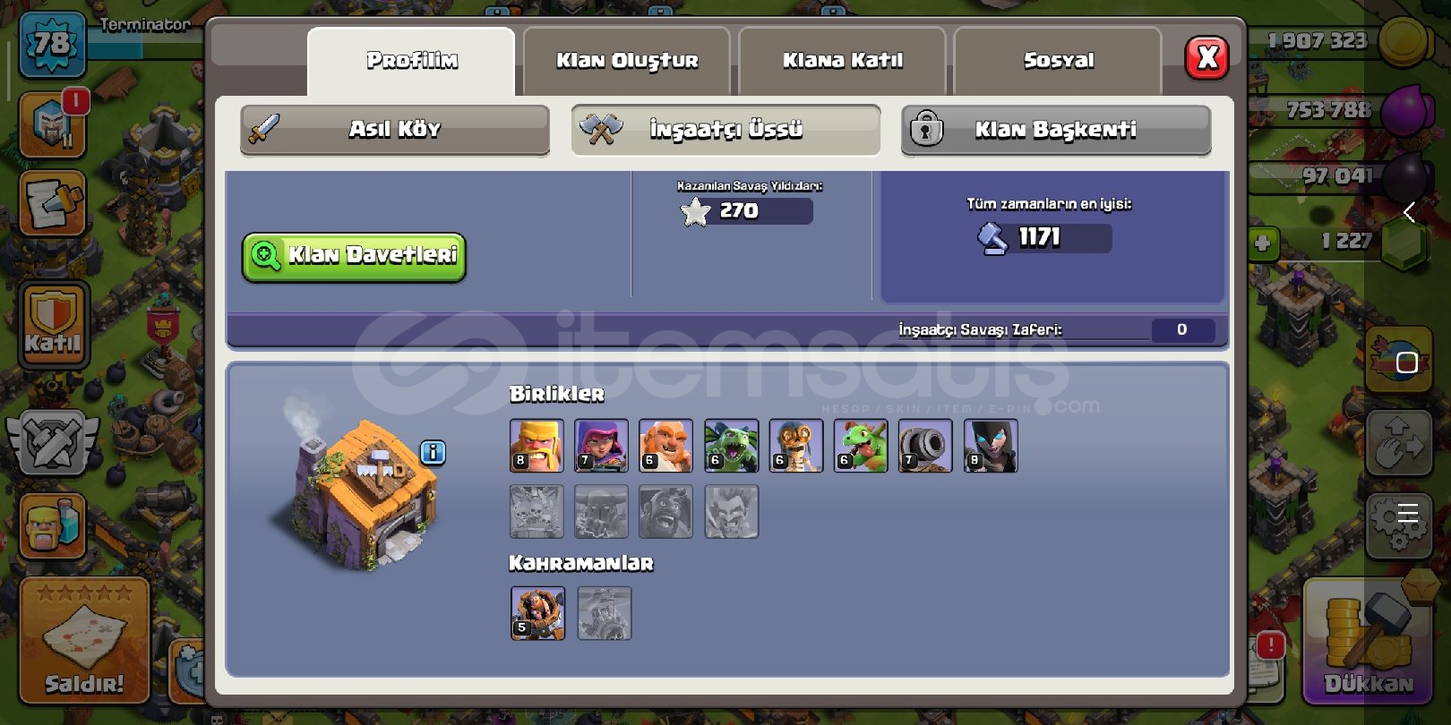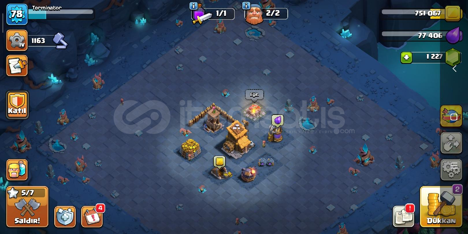 *78 Level*5 İnşaatçı*1227 Yeşil Taş*Otomatik Teslimat*Detaylar Resimlerdedir.*1 adet ücretsiz isim değiştirme hakkı vardır.*Supercell Bağlı değildir. Kendi hesabınızı bağlayabilirsiniz.