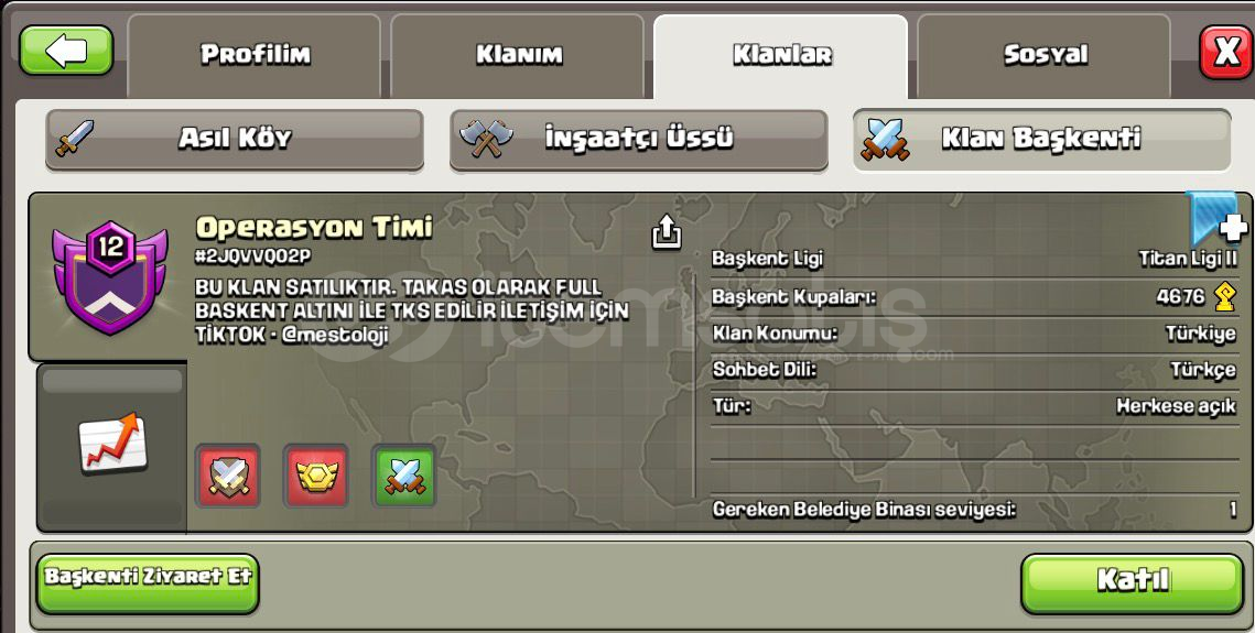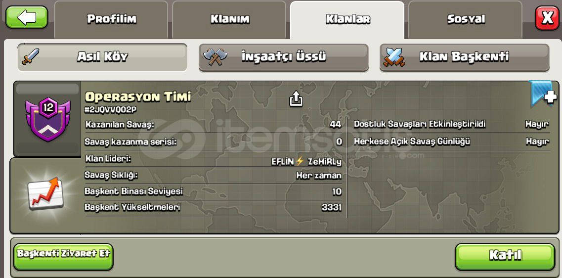 %100 MEMNUNİYET | 1 DAKİKADA TESLİM ⏳|10/10 DEĞERLENDİRME PUANIAÇIKLAMAYI LÜTFEN SONUNA KADAR OKUYUNUZ !HESABIN EK ÖZELLİKLERİ ⚡️ ✨13 Level Klanım • Operasyon Timi 🇹🇷• Eşi Benzeri Yok !• Harika Savaş Günlüğü• Kristal 1 I Savaş Ligi• Başkent Seviyesi 10 / 3331• Başkent Yükseltmesi FULL Seviye• Görsell...
