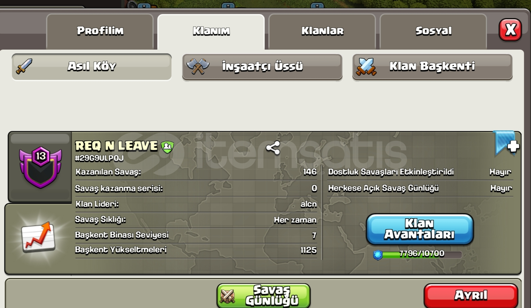 Başkent 7 seviye full , 14 levele yakın klan
