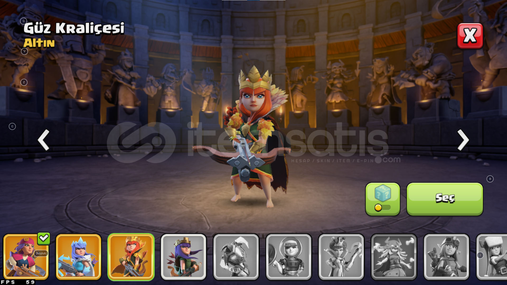 • HESAPTA ALTIN BİLET ALINMIŞTIR VE ÖZEL SKİNLER BULUNMAKTADIR KRALDA MEKANİK KRAL/İSKELET KRAL-KRALİÇEDE BUZ KRALİÇESİ/KORSAN KRALİÇE/GÜZ KRALİÇESİ-KORUYUCUDA PARTİ KORUYUCUSU/MEKANİK KORUYUCU/İLKER KORUYUCU BULUNUYOR