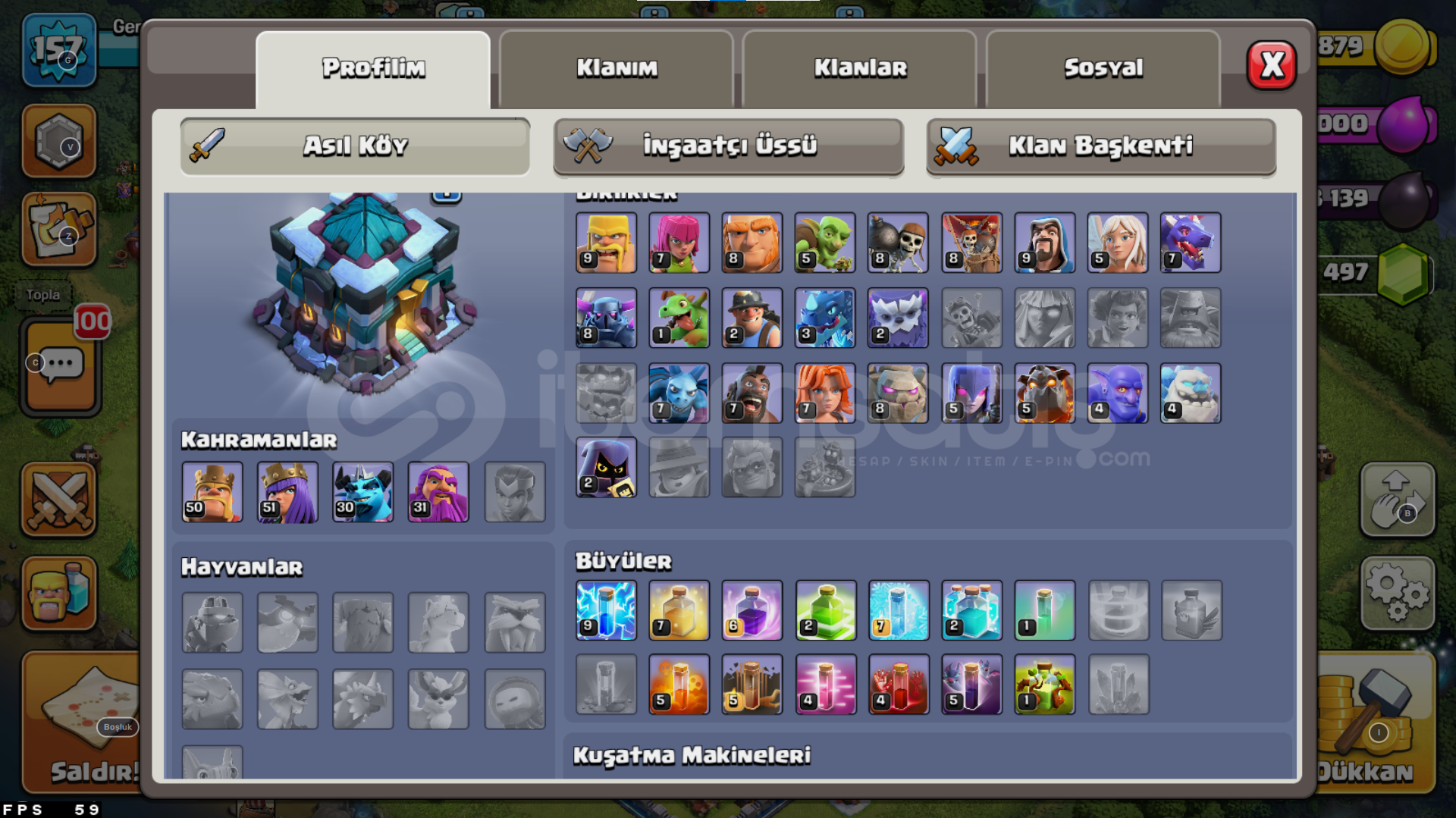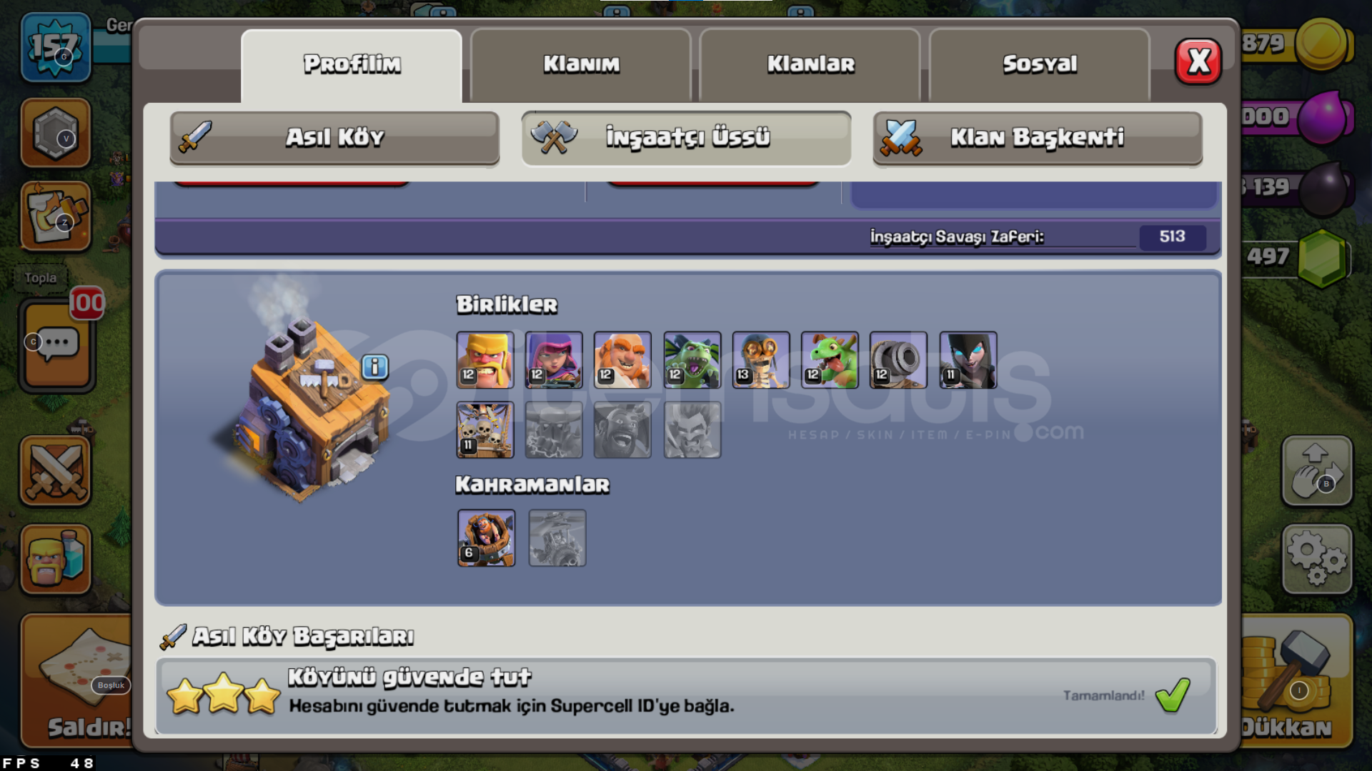 -------------------------------HESABIMIZ 4 GÜN GEÇERLİ BÜYÜK KAMPANYA FİYATINDAN SUNULMAKTADIR-------------------------------HESABIMIZ OTOMATİK TESLİMATTIR AKTİF OLMASAK BİLE ALABİLİRSİNİZHESABIMIZDA 11.7M ALTIN 14 M İKSİR 233 BİN KARA İKSİR 497 ELMAS BULUNUYOR İNŞAATÇI KÖYÜNDE İSE 1M ALTIN 1.6M İKSİR BULNUMAKTAANA KÖYDE DAHA LİG SIRALAMASINDA DE...