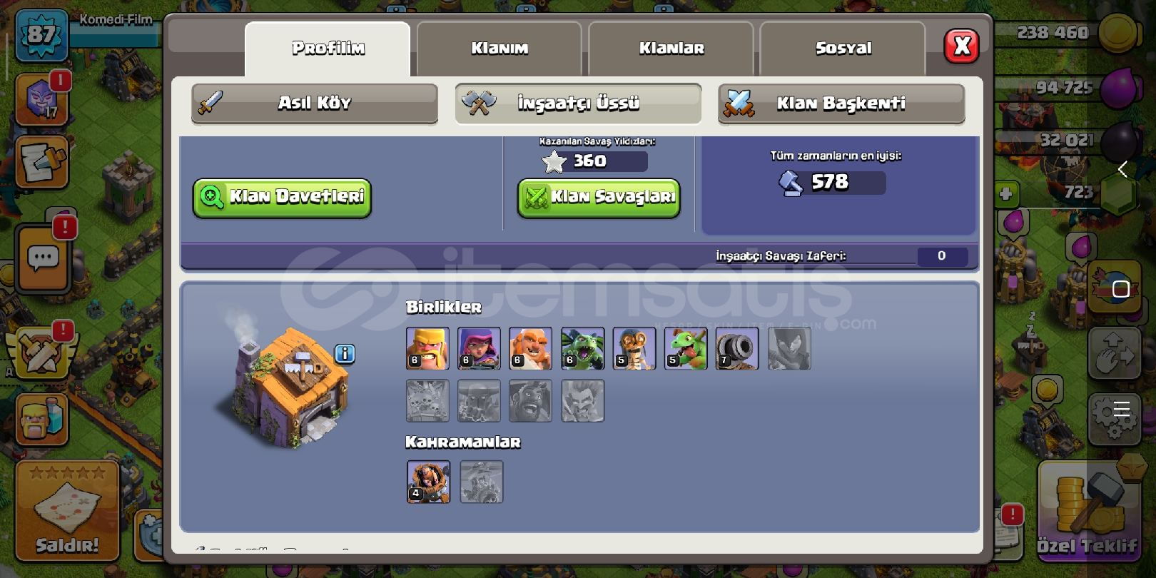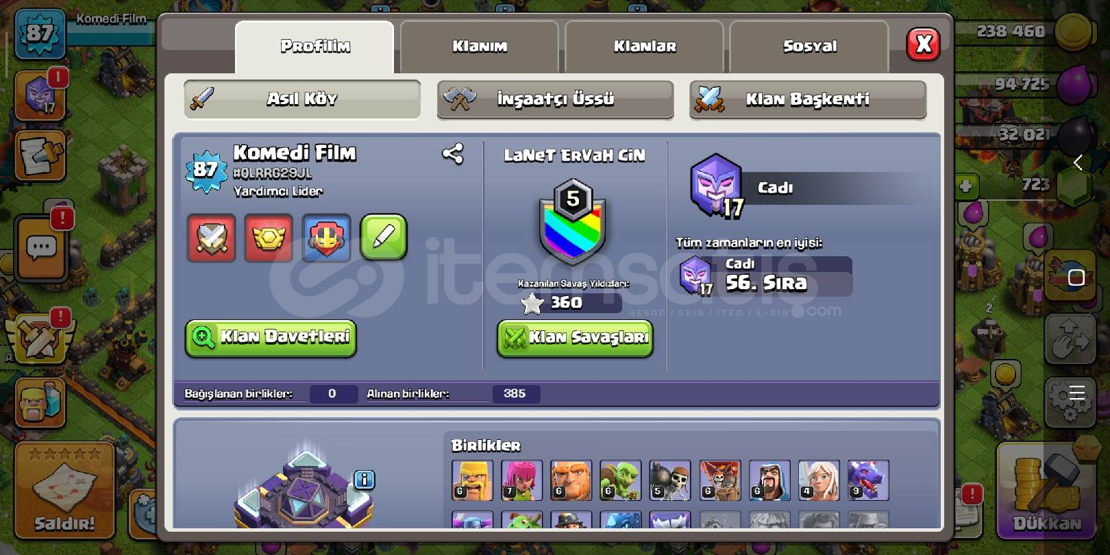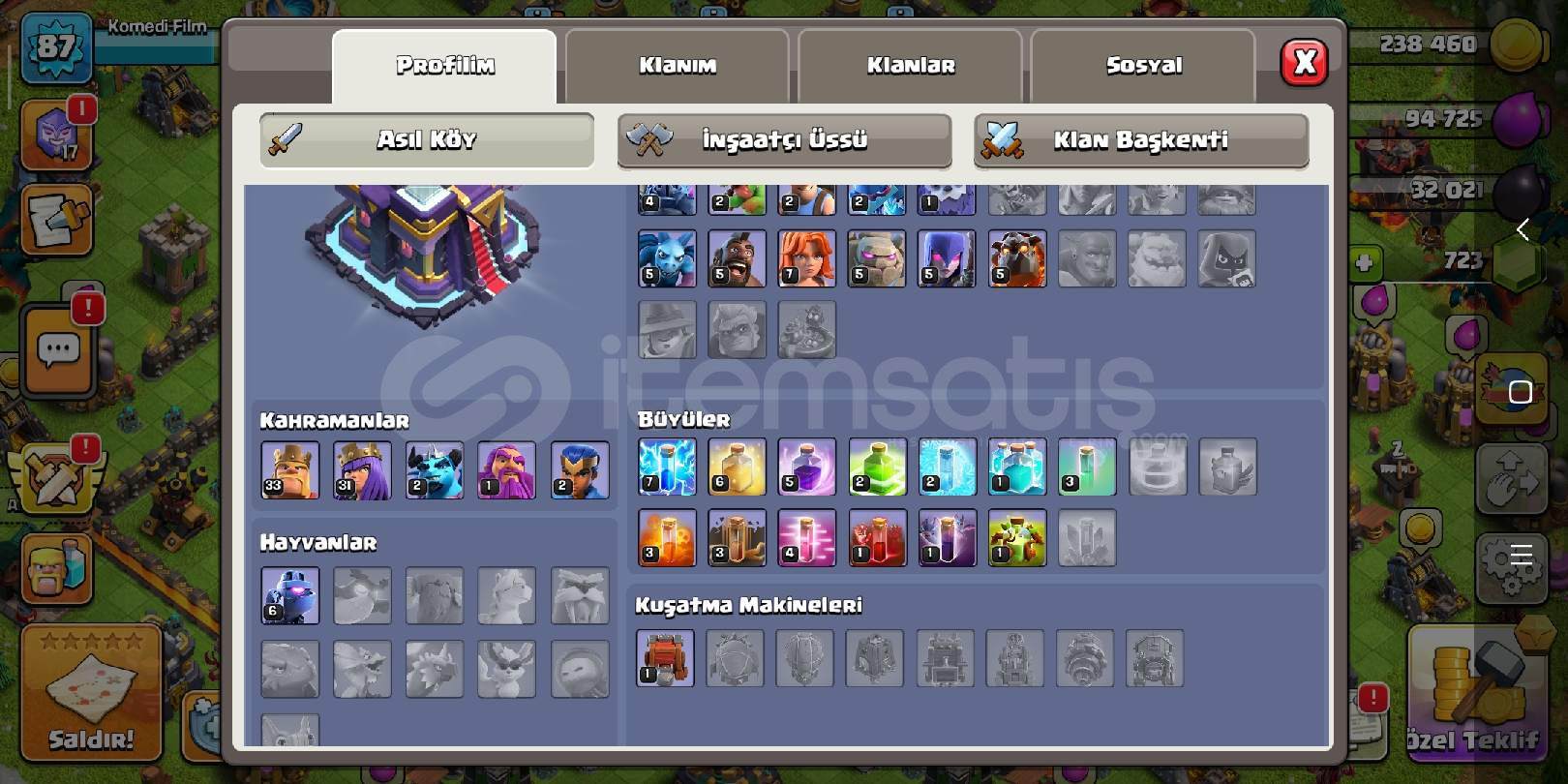 *87 Level*5 İnşaatçı*723 Yeşil Taş*Otomatik Teslimat*Detaylar Resimlerdedir.*1 adet ücretsiz isim değiştirme hakkı vardır.*Supercell Bağlı değildir. Kendi hesabınızı bağlayabilirsiniz.