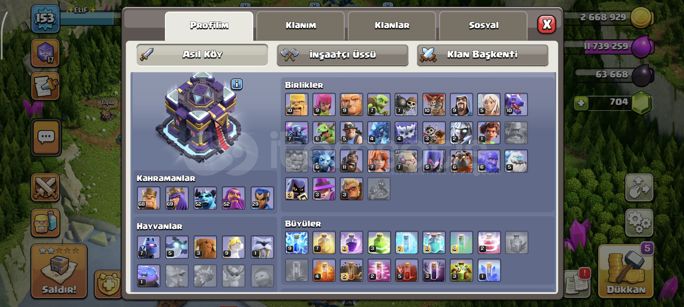153 SEVİYE HESAP704 ELMAS10 TANE KAHRAMAN KOSTÜMÜ783 KLAN SAVAŞI YILDIZLARI