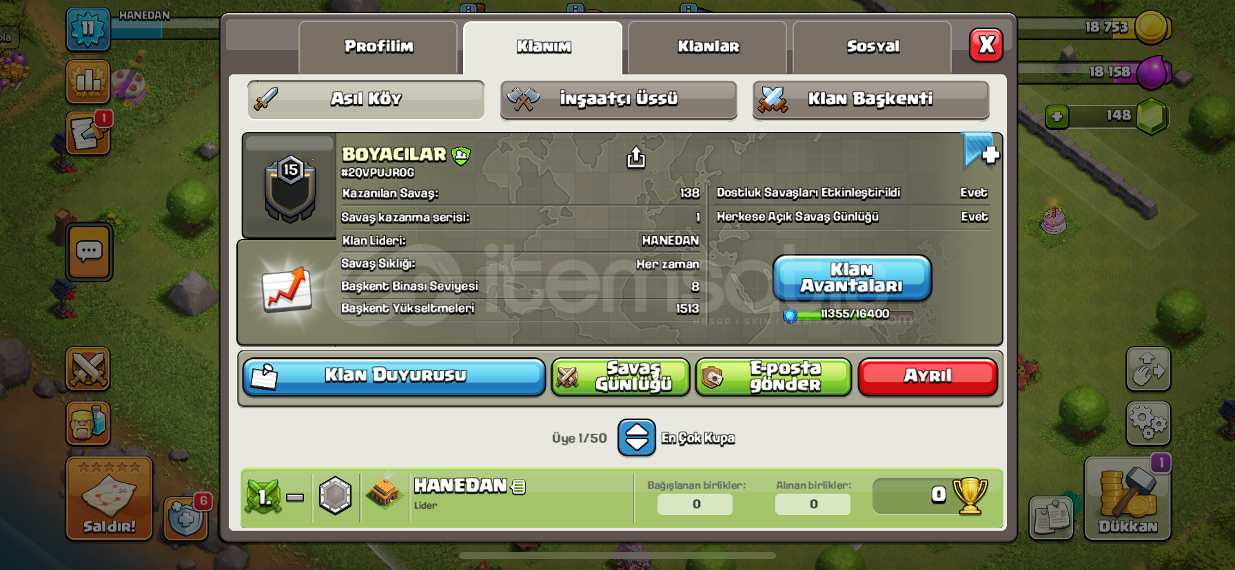 16 OLMASINA RAMAK KALMIŞ KLAN BAŞKENT 8 LEVEL USTA 3 LİĞİNDE MÜKEMMEL GÜNLÜKLÜ KLAN