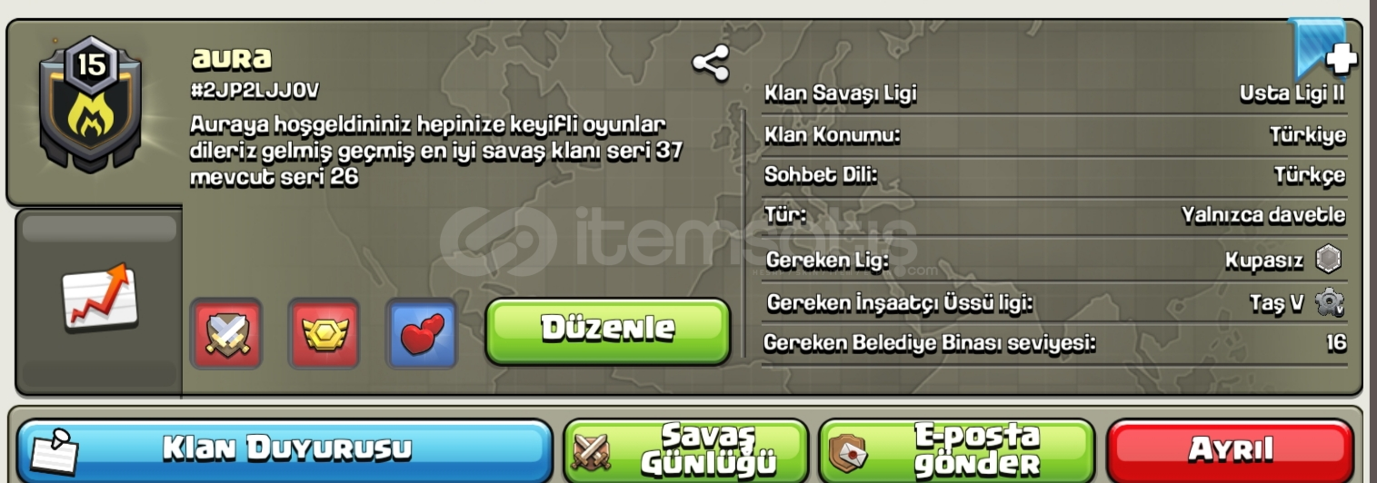15 SEVİYE AURA İSİMLİ BAŞKENT 9 ŞAMPİYON 2 KLAN