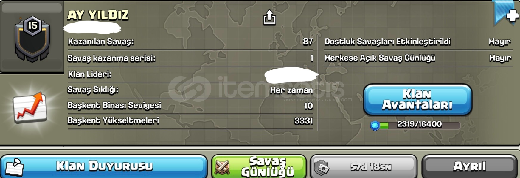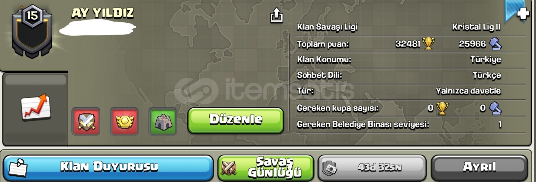 15 SEVİYE AY YILDIZ İSİMLİ KLANIM ACİL SATILIK