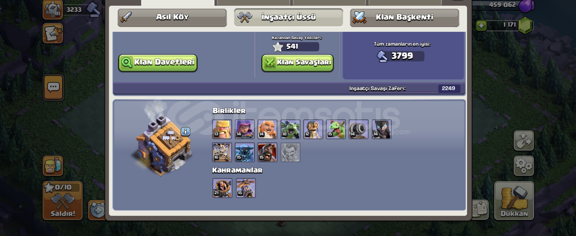 OTOMATİK İLANDIR ALDIĞINIZ AN BİLGİLER TESLİM EDİLECEKTİR...150 lvl olup bb11 max olan bir hesap full +full sadece duvarlar kaldı.6.inşaatçı ramaj kaldı yan köy çok iyi kasılmış.maile giriş firstmaildir aldıpınızda otomatik iletilecek bağlantısı ile beraber
