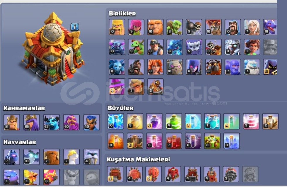 15 BELEDİYE ( KAHRAMAN VE BAZI TUZAKLAR HARİCİ ) MAX HESAPHESAP BİLGİLERİ GÖRSELLERDEKİ GİBİDİR EXTRA SORMAK İSTEDİĞİNİZ ŞEYLERİ YAZABİLİRSİNİZ.+5000 KUPALI CR HESABIDA BAGLIDIR SUPERCELLE (BAYADIR GİRMİYORUM)HESAP VERDİĞİNİZ MAİLE AKTARILACAKTIR.
