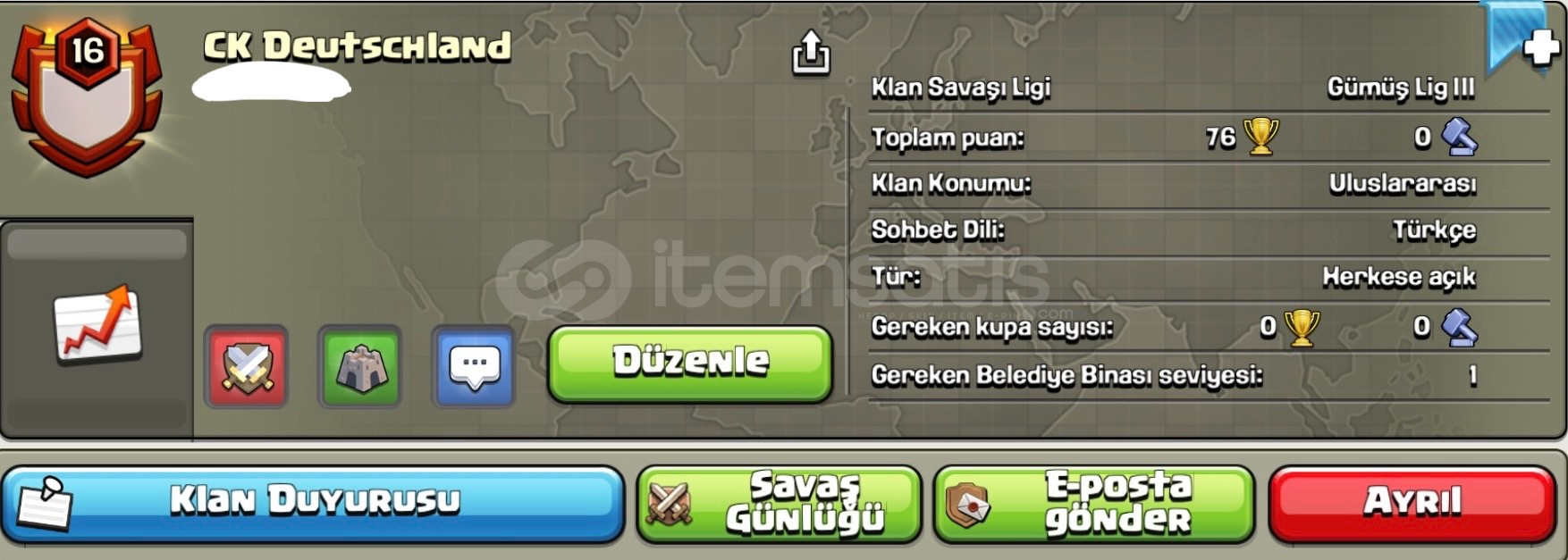 16 SEVİYE ALMAN KLANIM SATILIKTIR