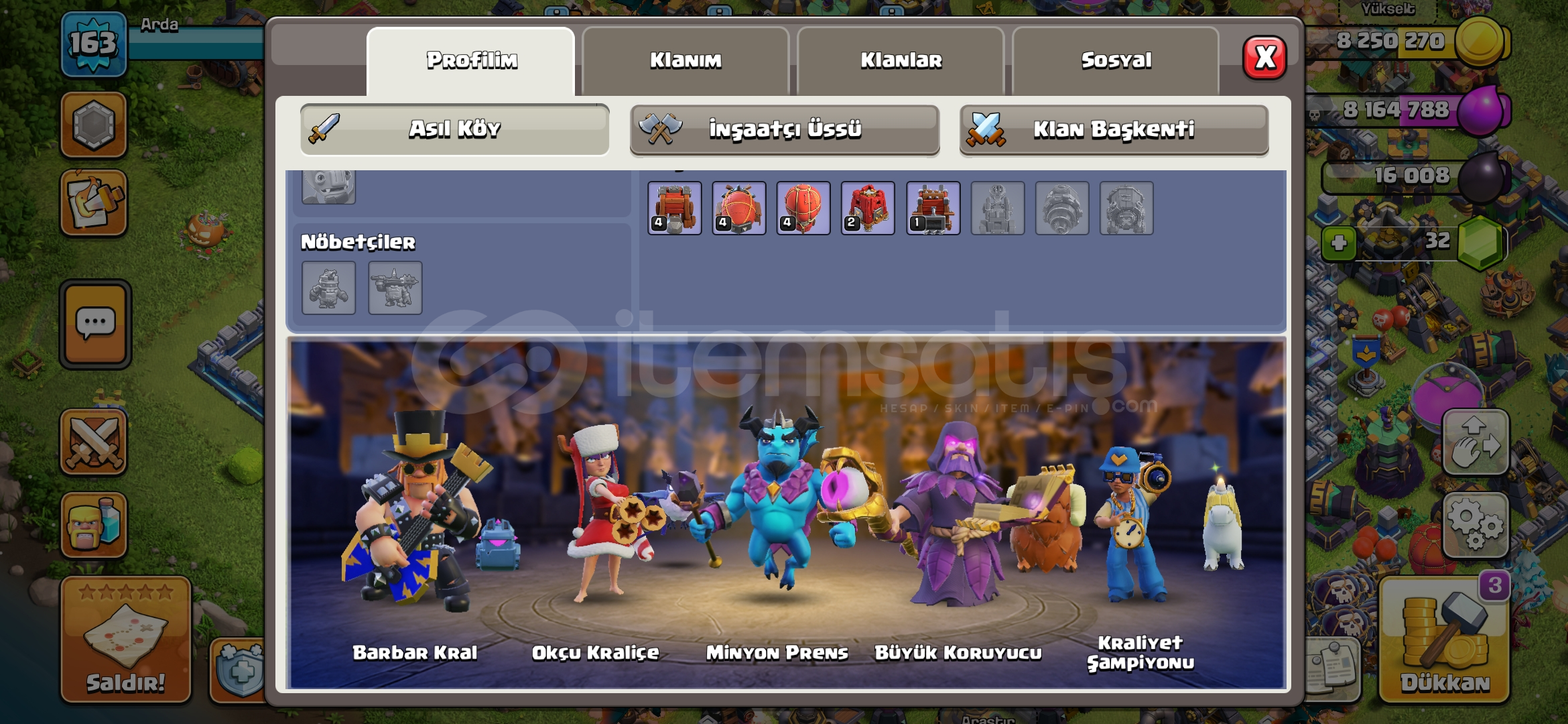 Hesap Hakkında Bilgiler BB14 yeni geçilmiş lakin çoğu savunma bb seviyesine gore Ful diyebilirim Barbar Kral : 3 adet Okçu Kraliçe : 2 adetMinyon Prens : YOKBüyük Koruyucu : 1 adet Şampiyon : 1 adet kostüm var Büyülü ögeler Mevcut - Labaratuvar dengeli yukseltildi. #LJYRQYYPR isteyenler etiketi aratarak bizzat bakabilirler. Alacak Kişiye Şimdiden Hayırlı olsun