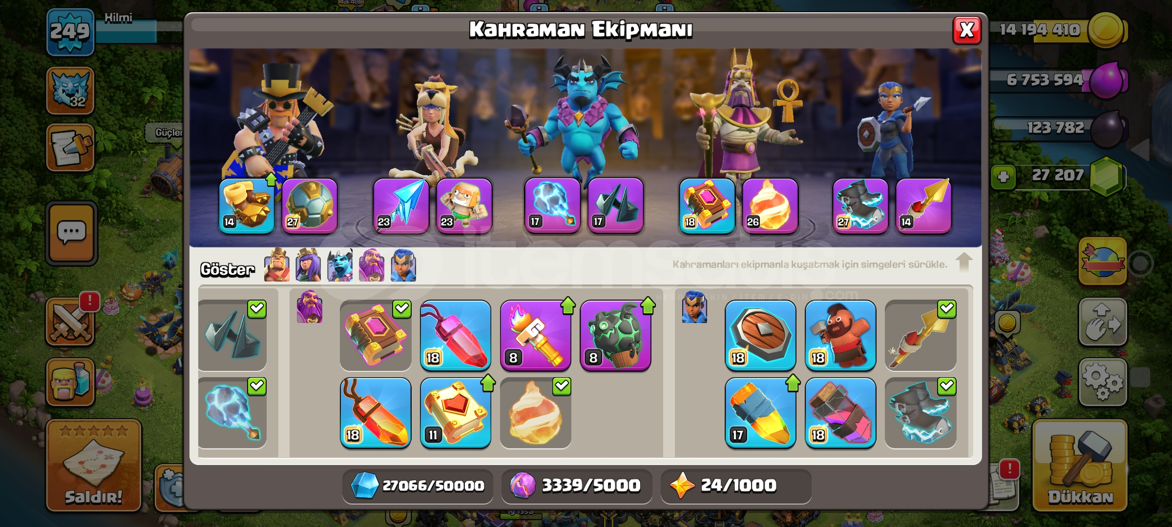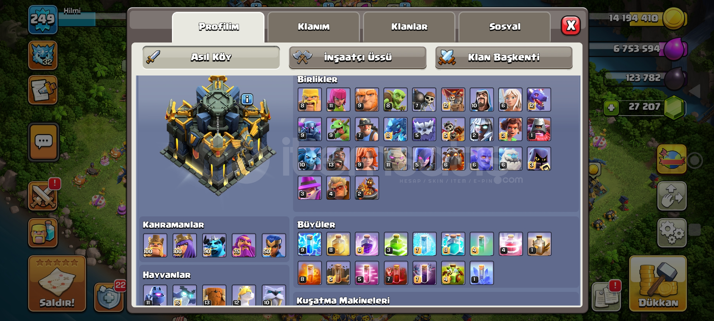 Hesab 17 belediye kahramanlar ve demirci ekipmanlari cok guzel durumda sadece profil kaldi lig madalyasi 2 k isim degisikligi bile beles hesab korumasi aktif mailinize baglanip verilecektir bu fiyata kacirmayin