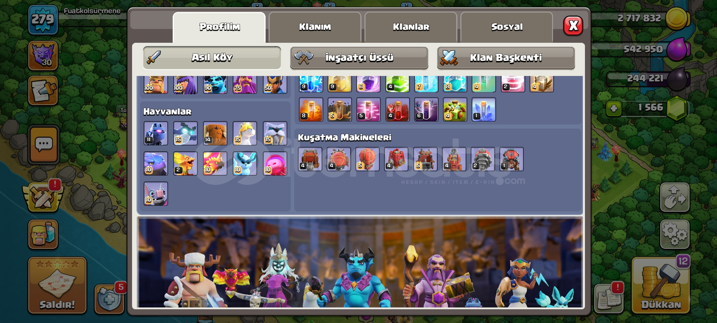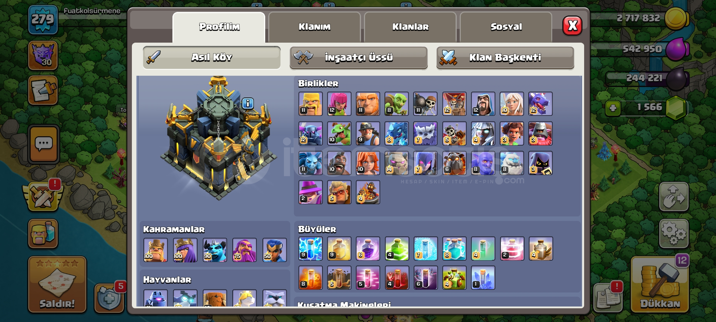 Hesab 17 belediye fulldur duvar dahil biraz sarjlar ve profilde bir kac sey kaldi meil sifreyle verilecektir bu fiyata kacmaz