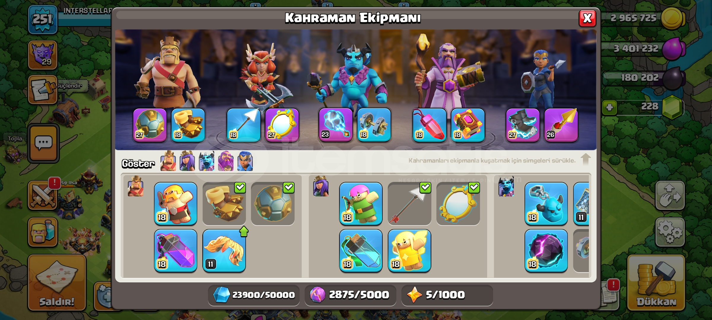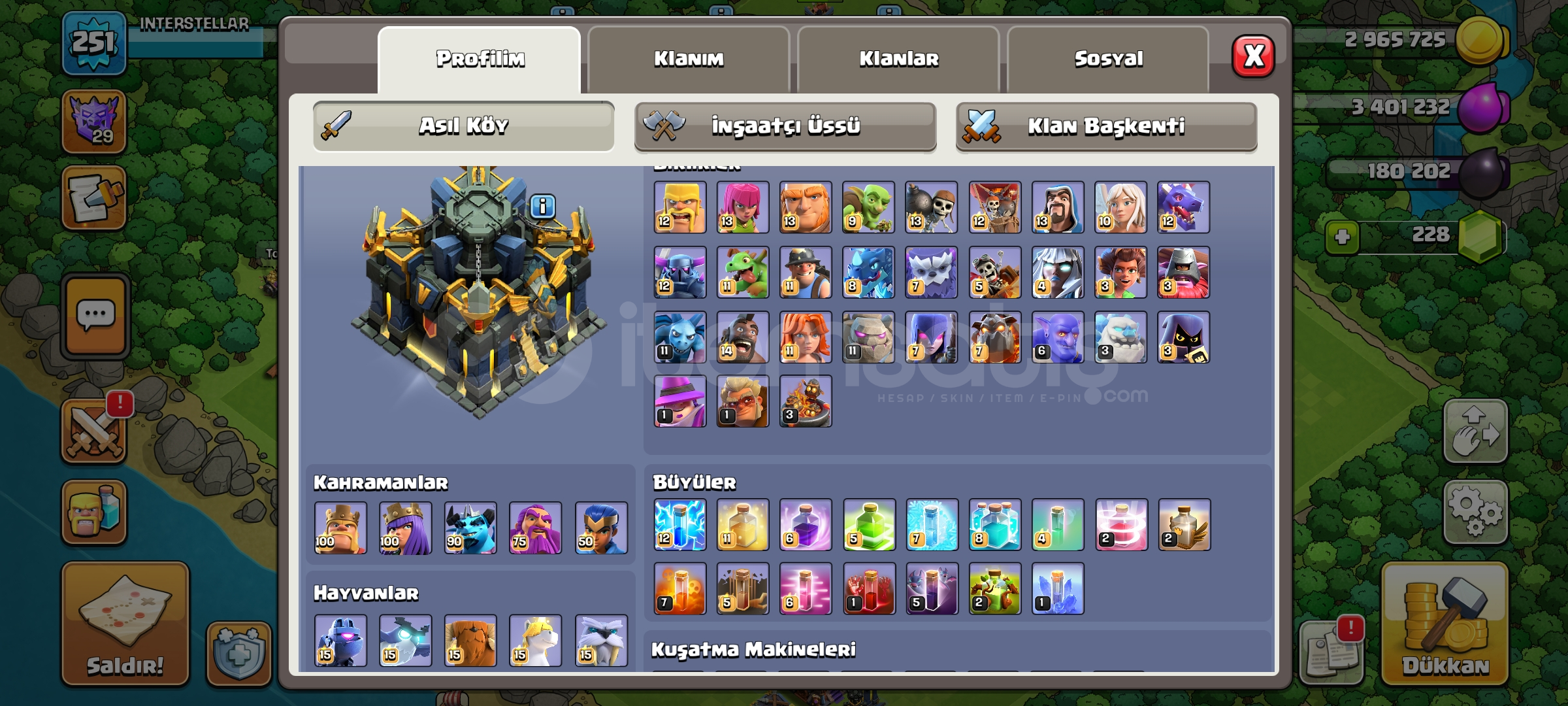 Hesab 17 belediye mail sifreyle verilecektir sadece duvarlar kaldi sarjlar falan hepsi bitmis durumda ekipmandada sadece aksiyon figuru eksik cok guzel hesab bu fiyata kacirmayin