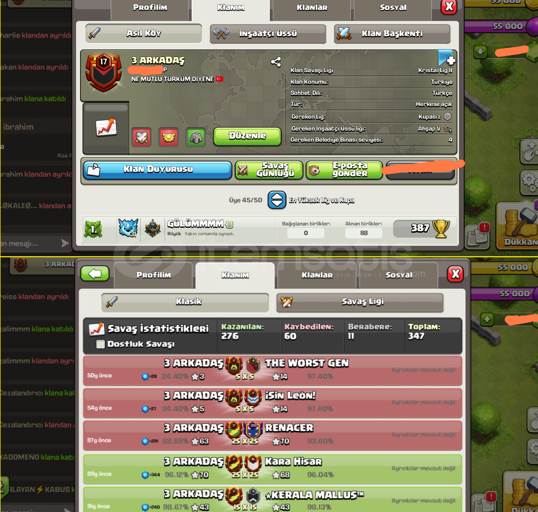 18 LEVELE sadece 1 savaş kalmış nerdeyse 18 level denilen klanKlan Türk isimli şahane bir klandirAktifligi bağış klanlarinin aktifligi gibi hiç durmadan aktiflik ve gelen giden mevcutTürkiye'nin en bilindik klanıTürk usulü pazarlık yapılırBu fiyata bu klan kaçmaz abi kaçmazzz