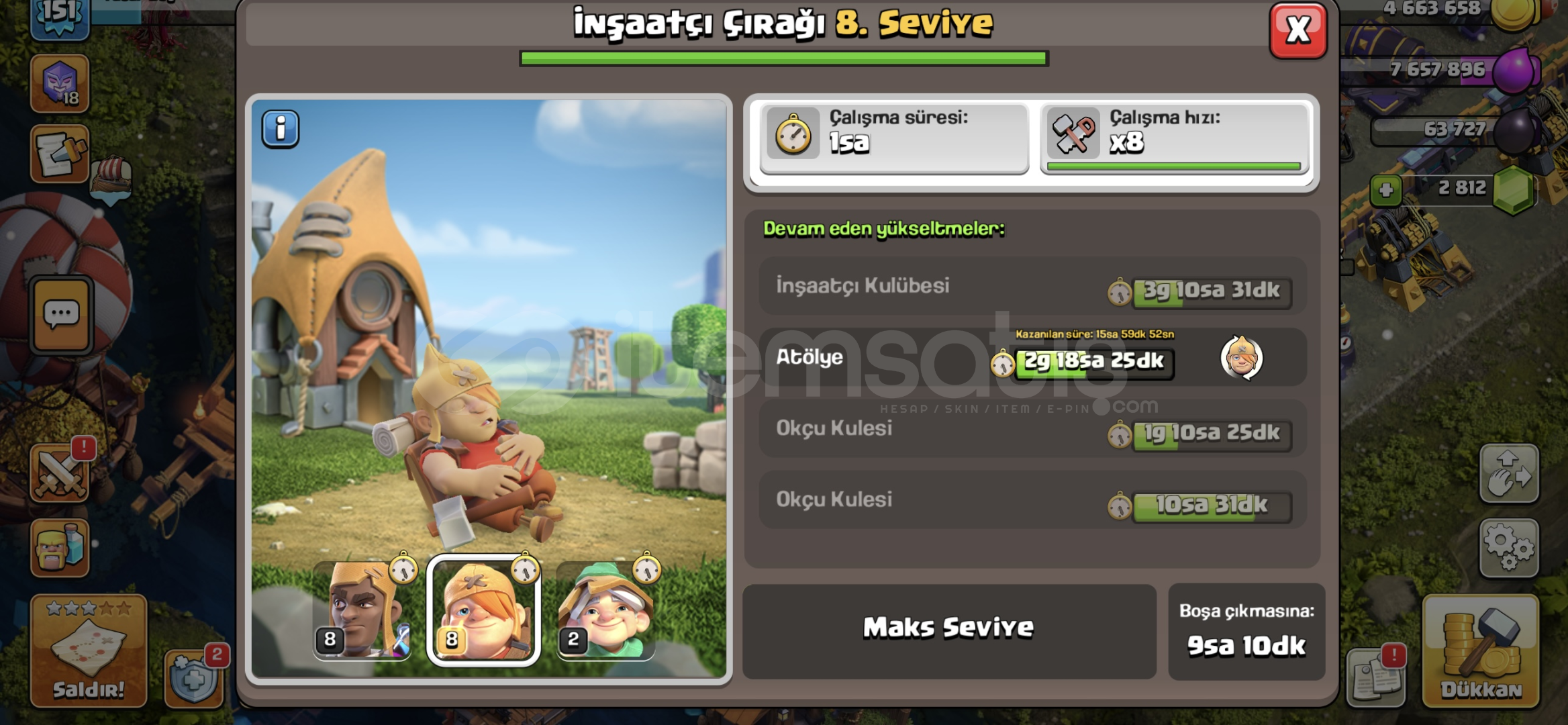 ⚡️1700 LİG MADALYONLU⚡️⚡️OYUNUN VERDİĞİ DIŞINDA EXTRA 2 ARKA PLAN⚡️⚡️8.SEVİYE ASİSTAN 8 SEVİYE ÇIRAK⚡️⚡️3000TAŞ⚡️⚡️KRAL VE KRALİCE ÜCRETLİ KOSTÜMLERİ⚡️⚡️2.KÖYDE SAAT KULESİ VE TAŞ MADENİ MAX⚡️⚡️6.İNŞAATÇI AÇIK&...