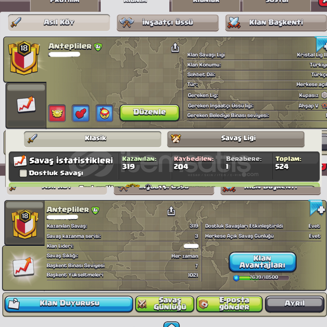 🏰 CLASH OF CLANS - %100 GÜVENLİ & ANINDA TESLİMAT ⚡⭐ 10/10 Değerlendirme Puanı | Memnuniyet Garantili!🔥 NEDEN BİZDEN ALMALISINIZ?Yüzlerce başarılı satış ve müşteri yorumuyla en güvenilir Clash of Clans portföyünü sunuyoruz. Her bütçeye uygun köy ve klan seçeneklerimiz mevcuttur.📩 Sorularınız mı var? Çekinmeden mesaj atab...